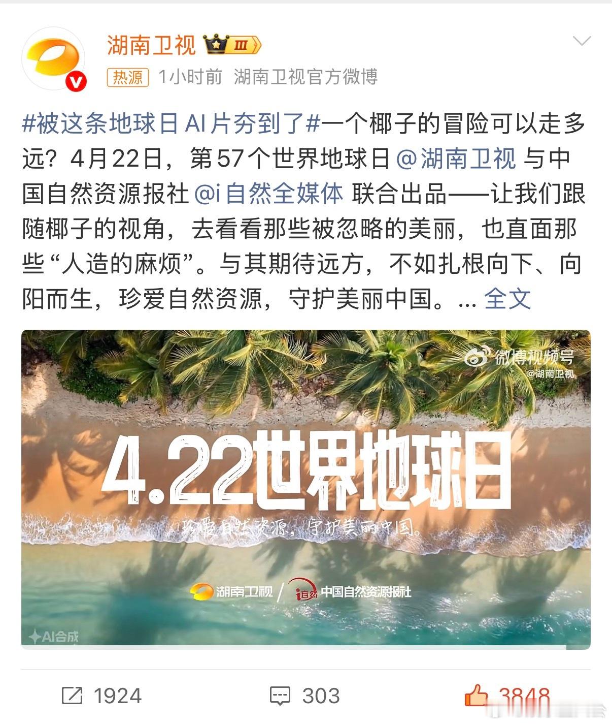 4月22日,和湖南卫视一起,为地球发声,为自然助力🌍被这条地球日AI片夯到了爱