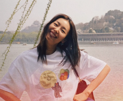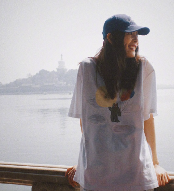 刘雯的个子是很高挑的,她头戴蓝色棒球帽,像个开朗可爱的运动员。