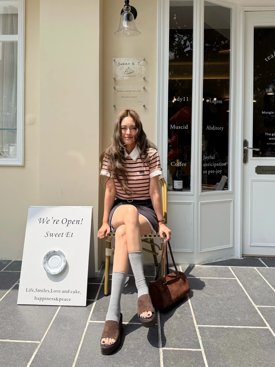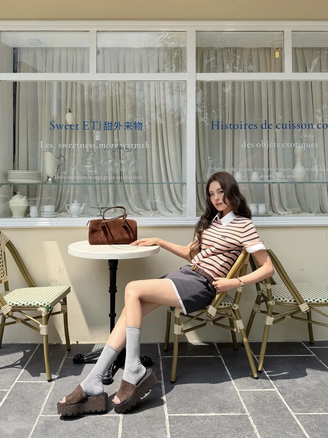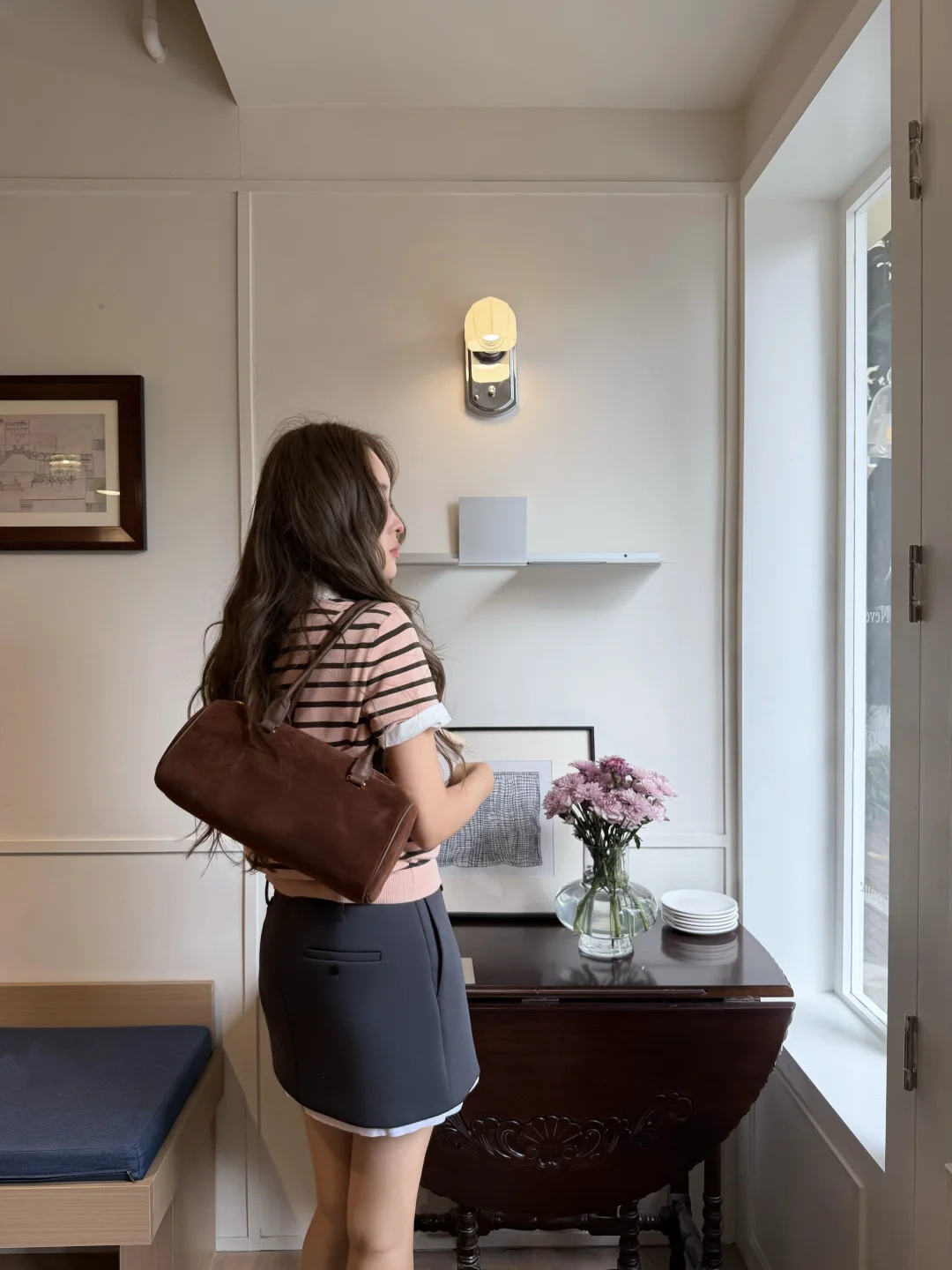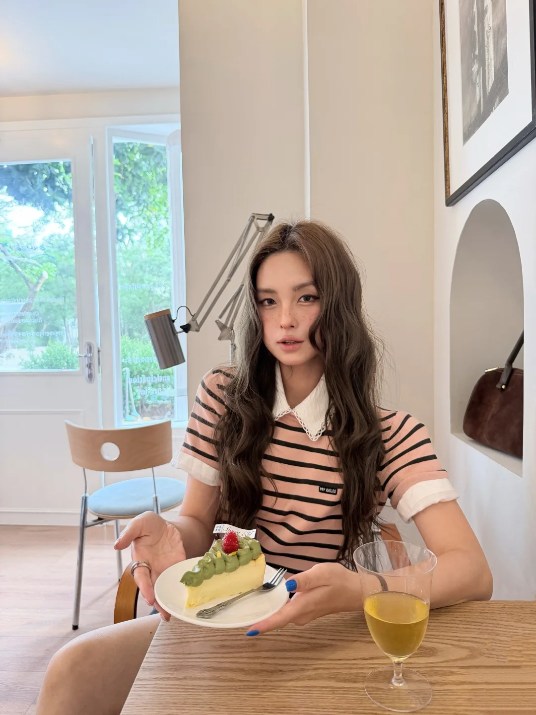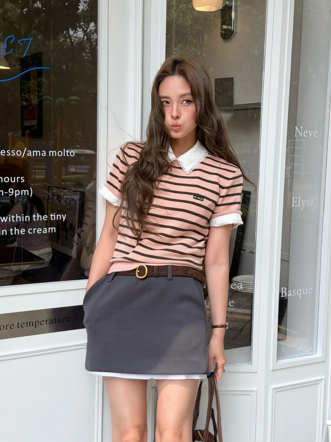 粉嫩条纹衫好适合春天