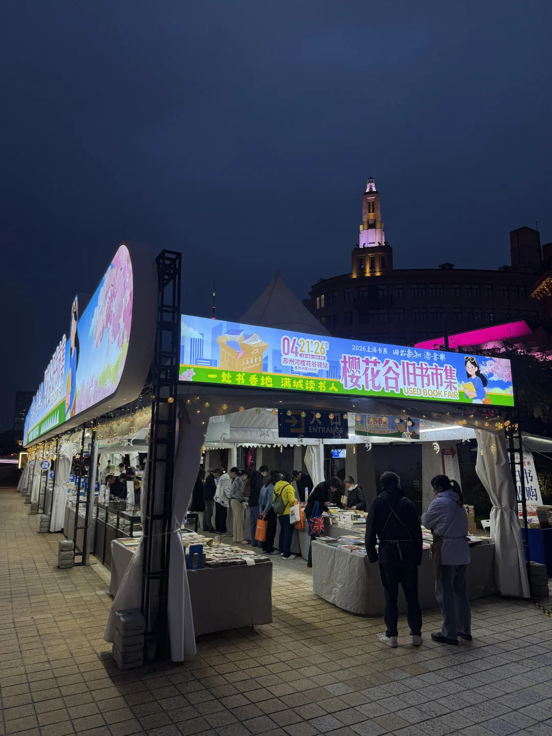 下班路过乍浦路桥,樱花树下开了一个旧书市集