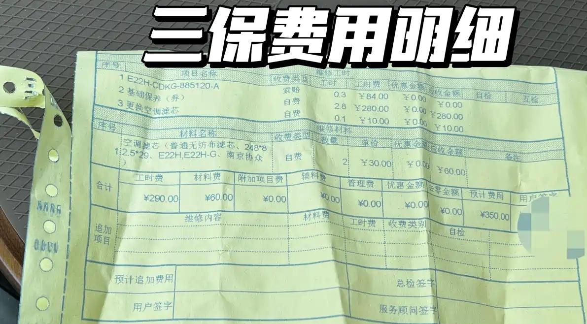 这是吉利星越第3次保养,也就是3万公里保养,保养的费用一共就350块。我发现电动