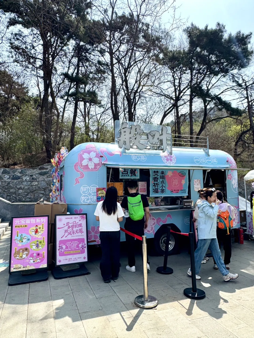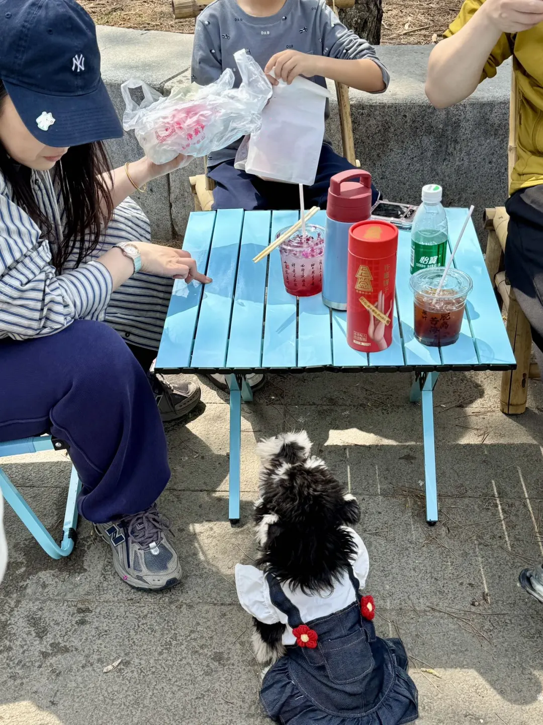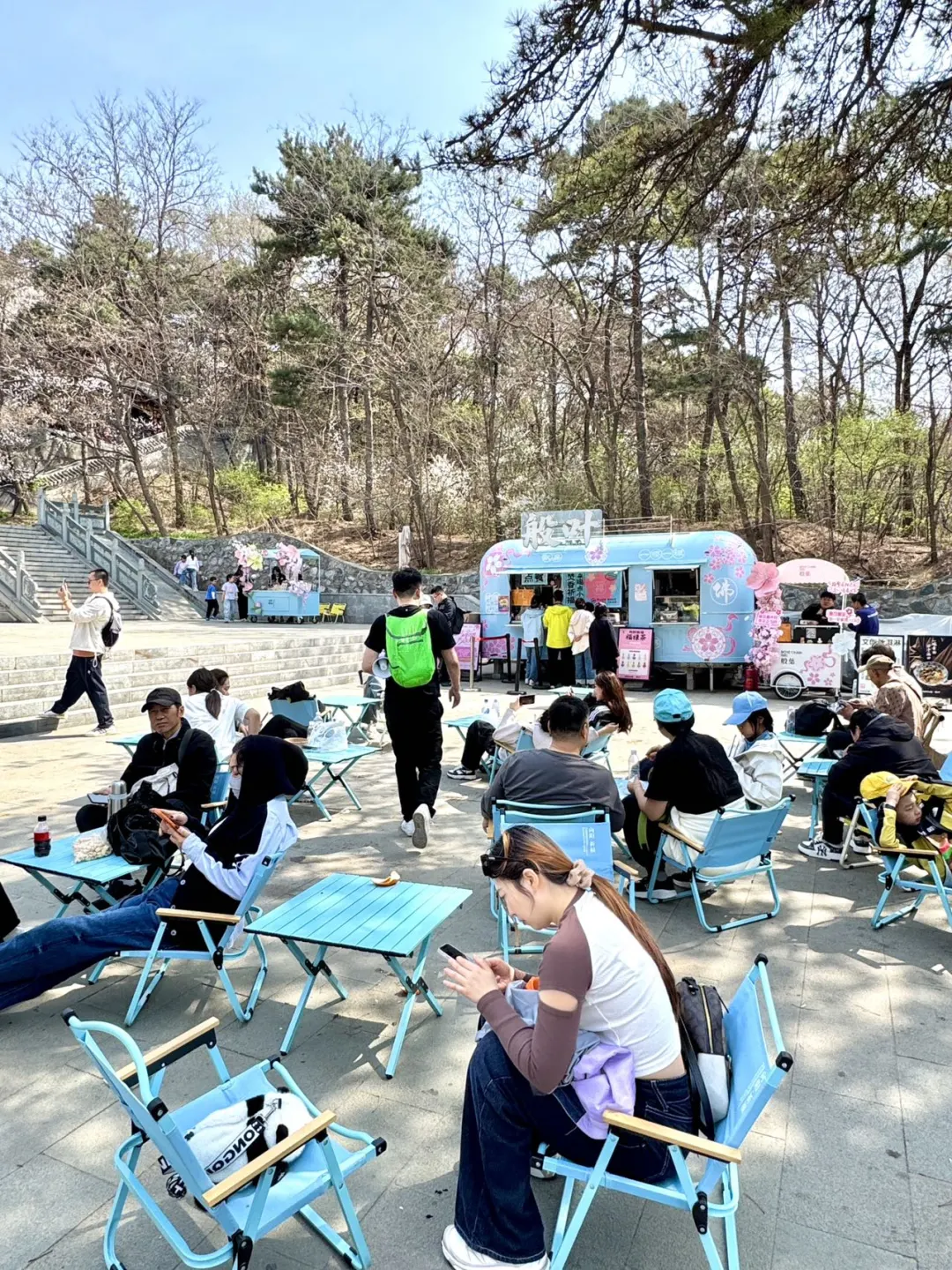 顺便找个座位,小蓝色的桌椅真的很春天