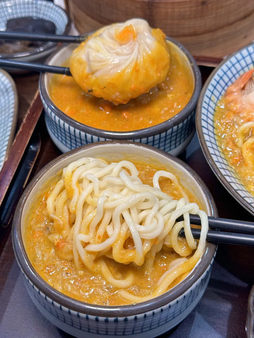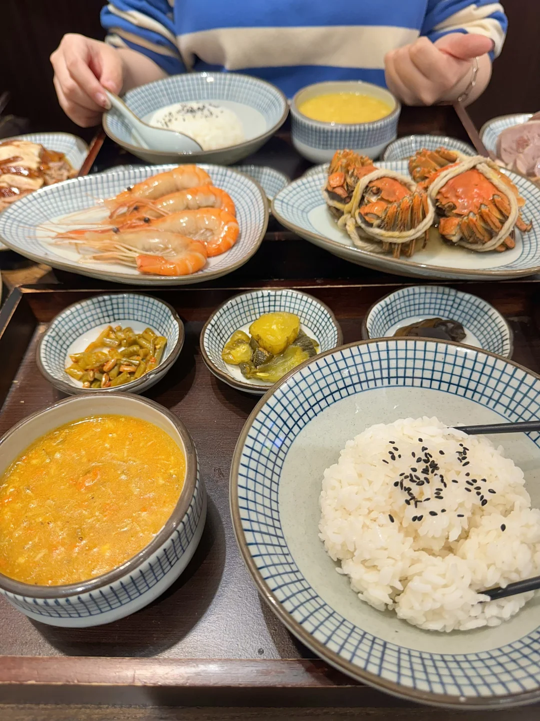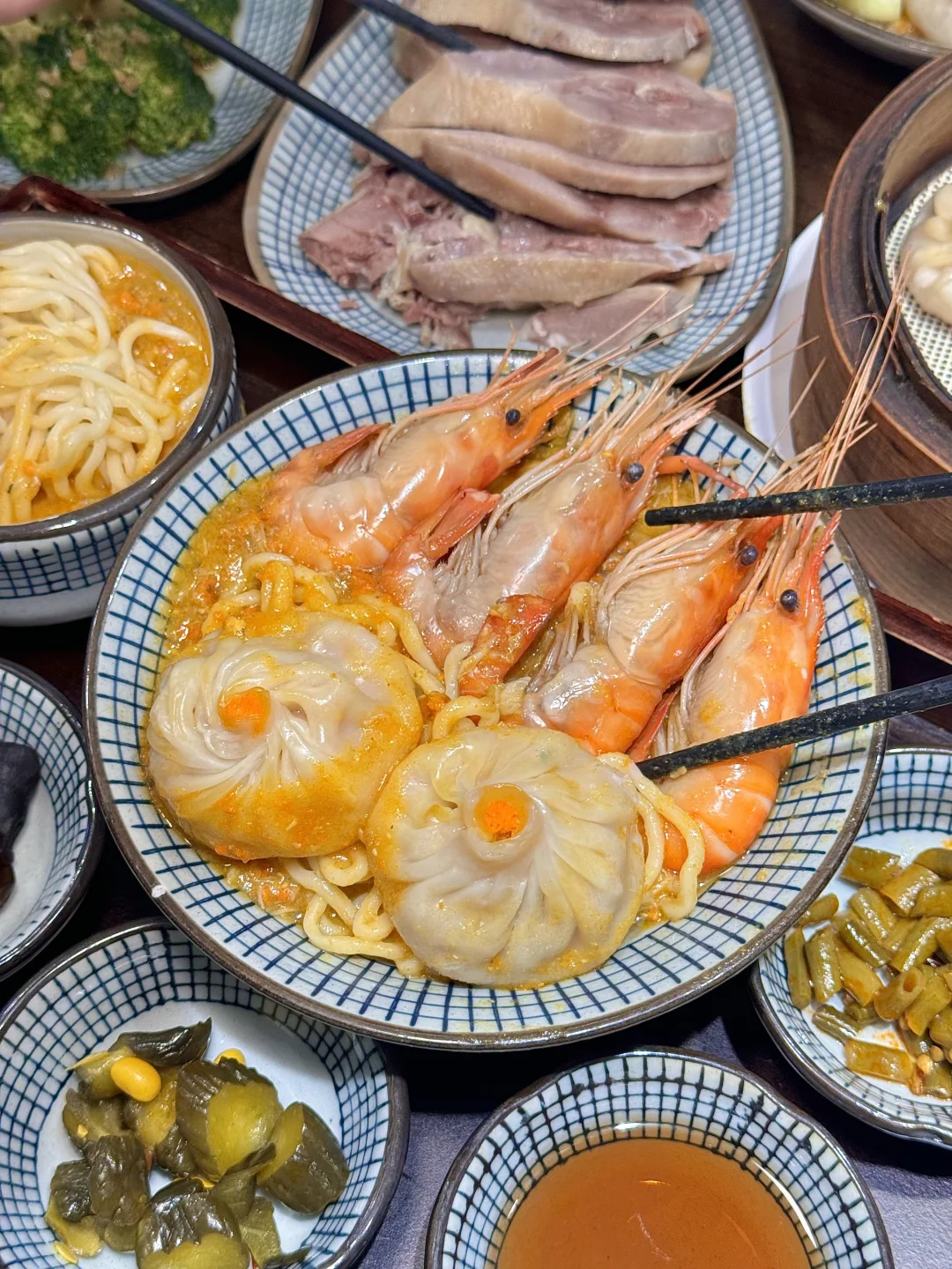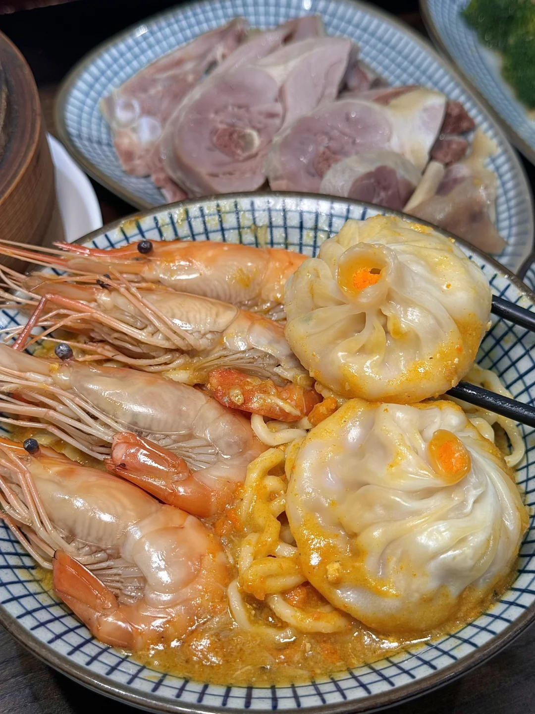 蟹黄汤包皮薄到透光,咬开爆汁💦,一口鲜掉眉毛💕。熟醉大虾、醉蟹更是绝,好吃到没朋友