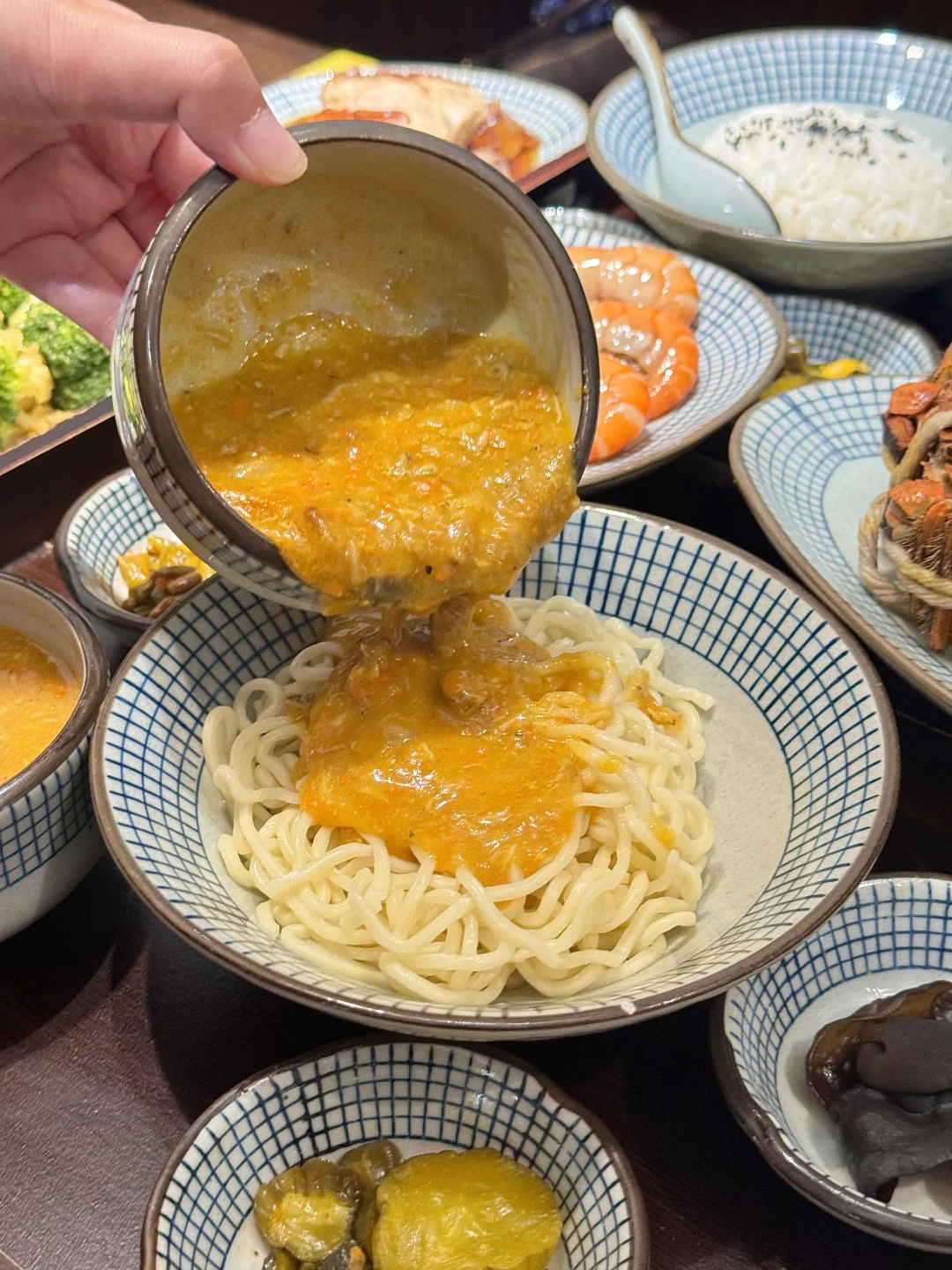 每碗蟹黄都是手工现剥,鲜到上头,油润不腻✨一人拌饭一人拌面,金灿灿的蟹黄蟹肉裹满每一根面,淋上蟹醋,jujuju香👏