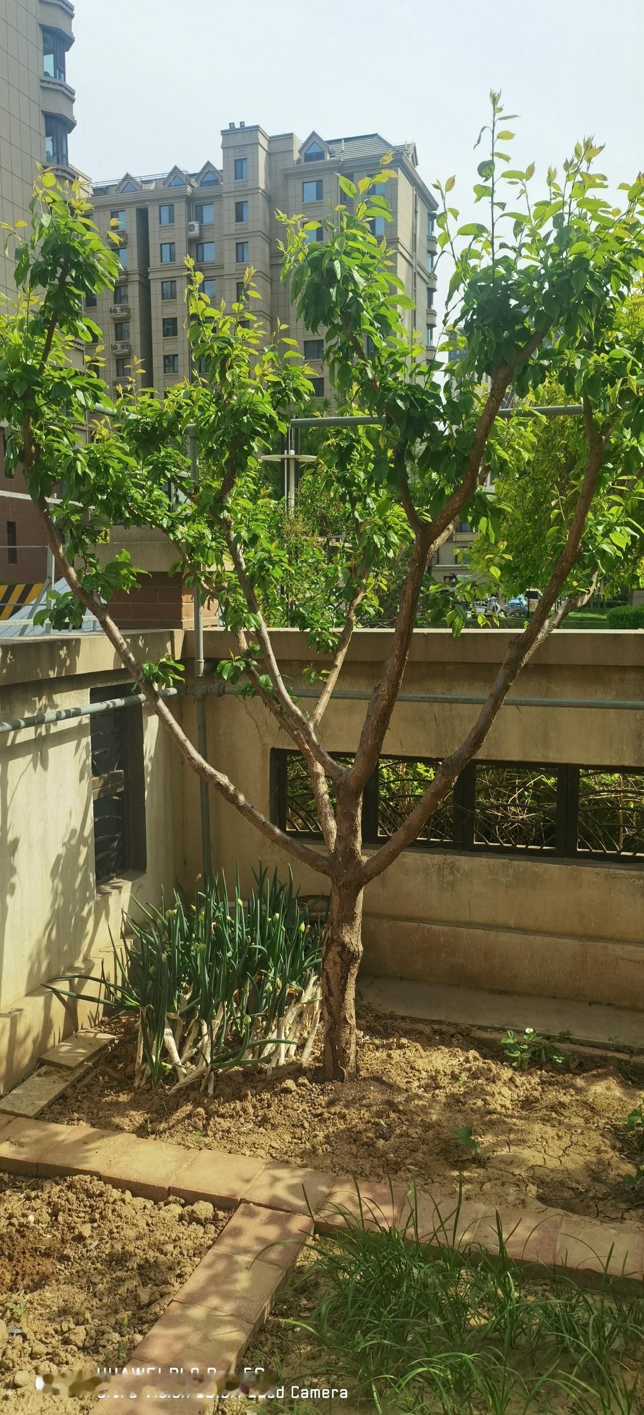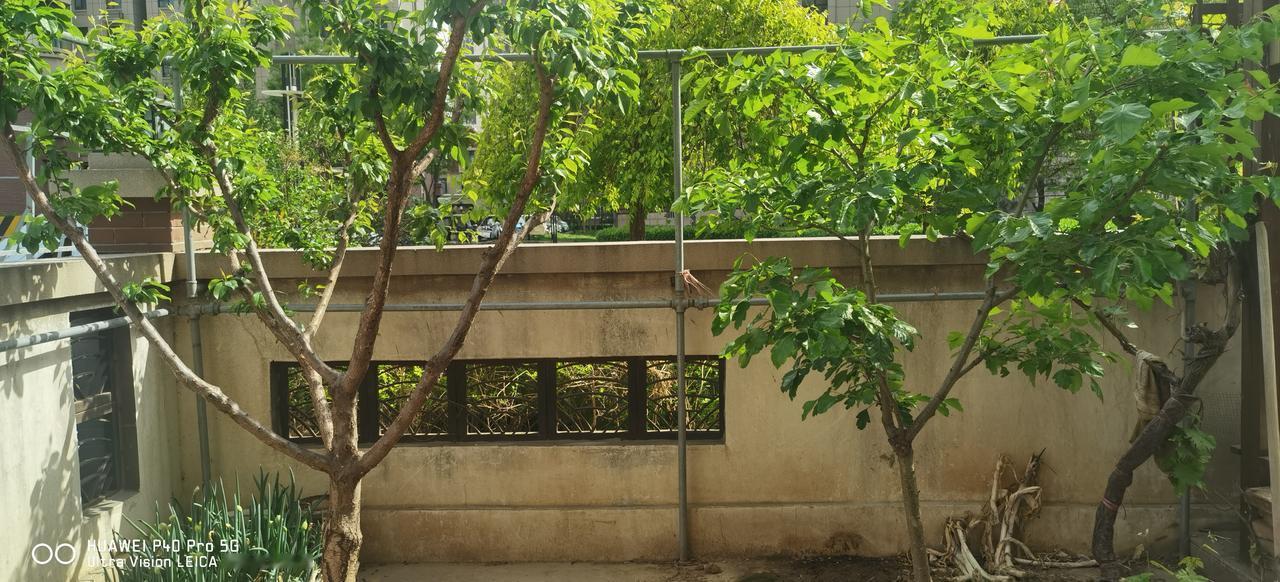 庭院里有一棵杏梅,一棵山楂,两棵无花果,还有一架葡萄,小小庭院从春到秋总是绿意盎然。