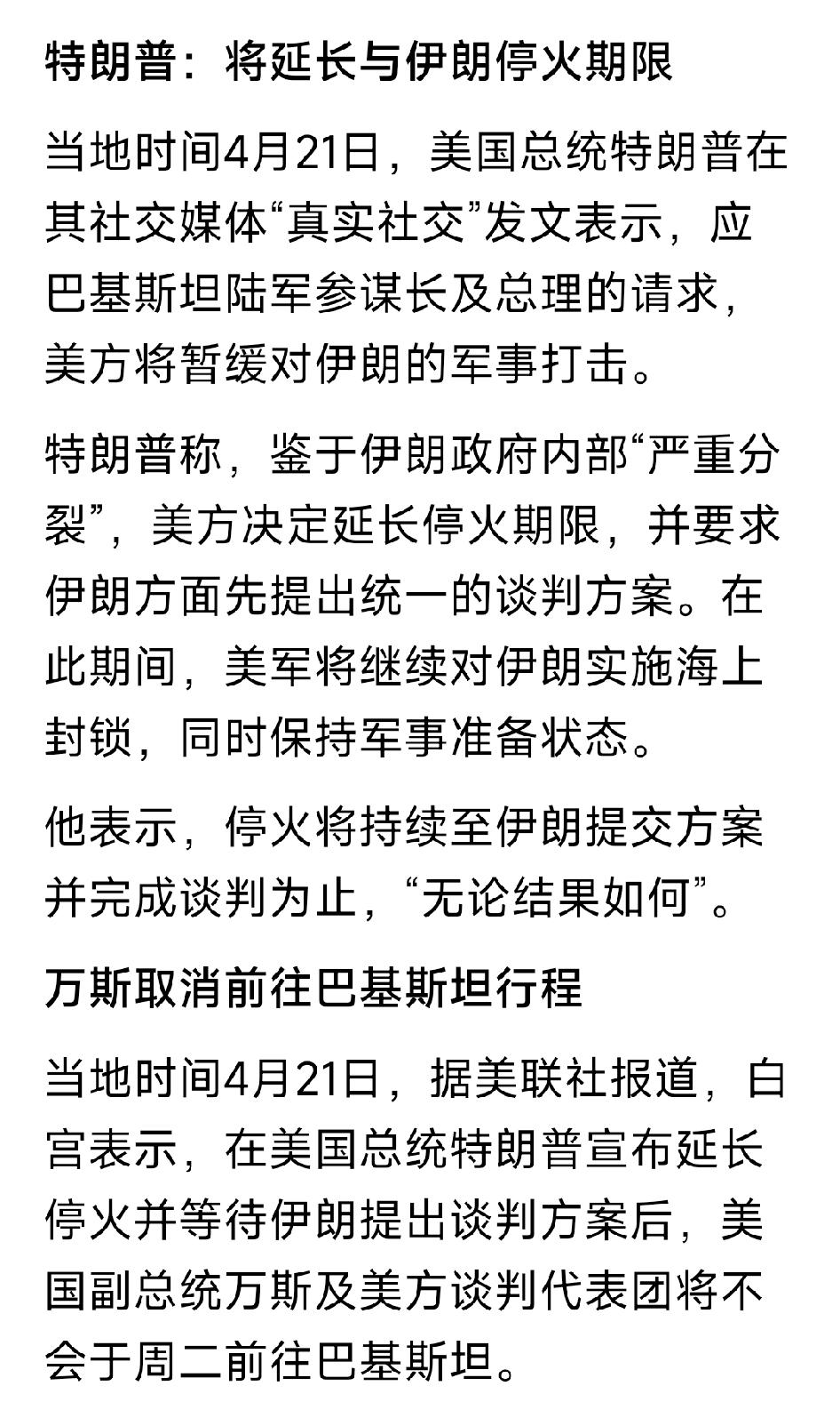 伊朗认为,美国正在阻挠达成任何实质性协议,参与谈判纯属浪费时间。伊朗也通过巴基斯坦宣布了这一消息,表示为了充分维护伊朗人民权利,伊方代表团22日将不会前往巴基斯坦。