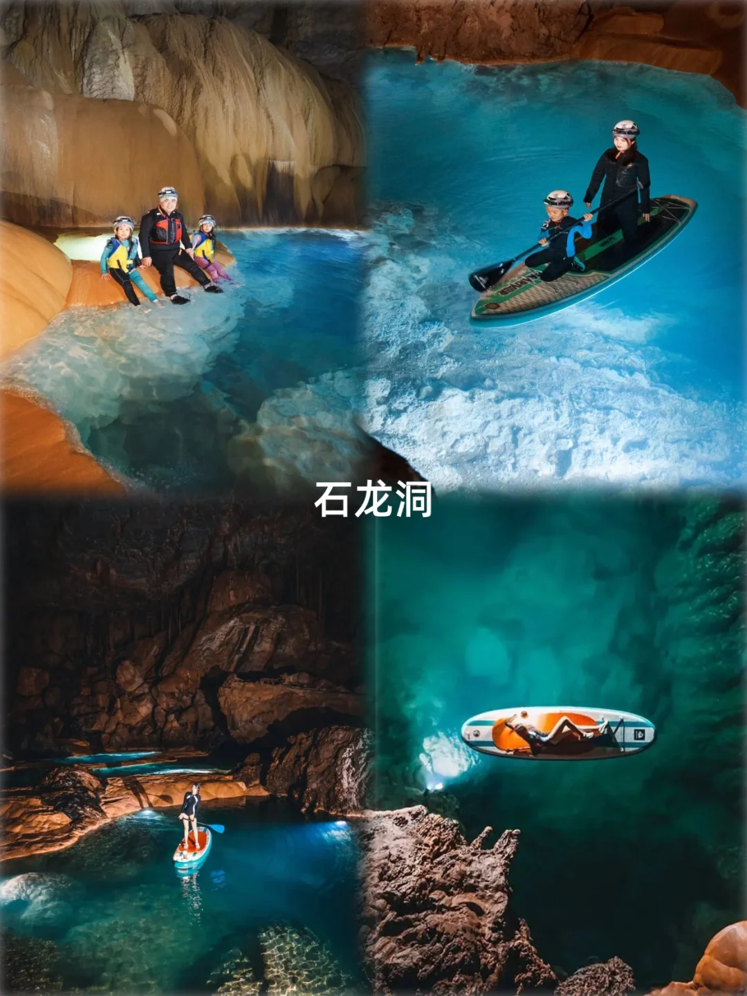 🔸 石龙洞:桨板探洞 + 地下瑶池 + 钟乳石群。玩法相对单一,以划桨板观景为主。