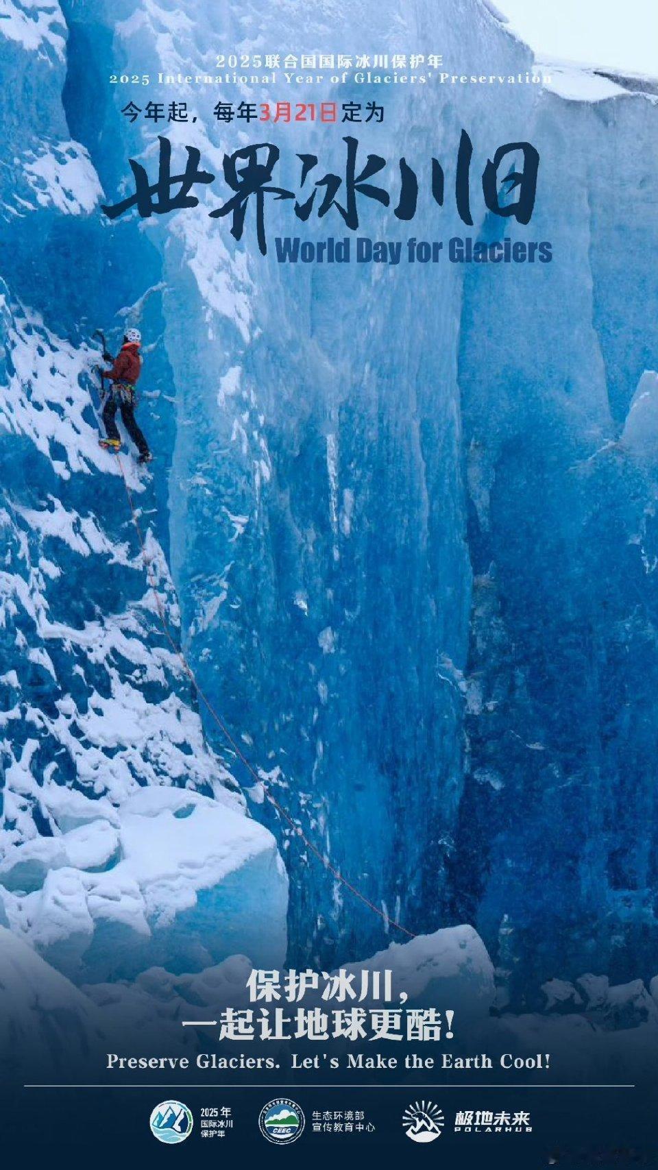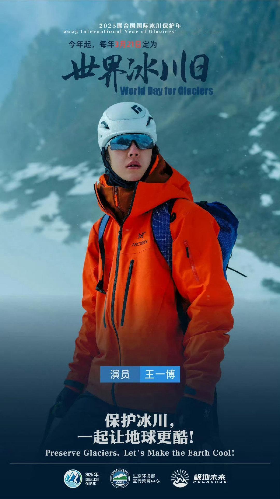 去年首个世界冰川日,他拍摄联合国冰川保护纪录片,生态环境bu教育中心出品。
