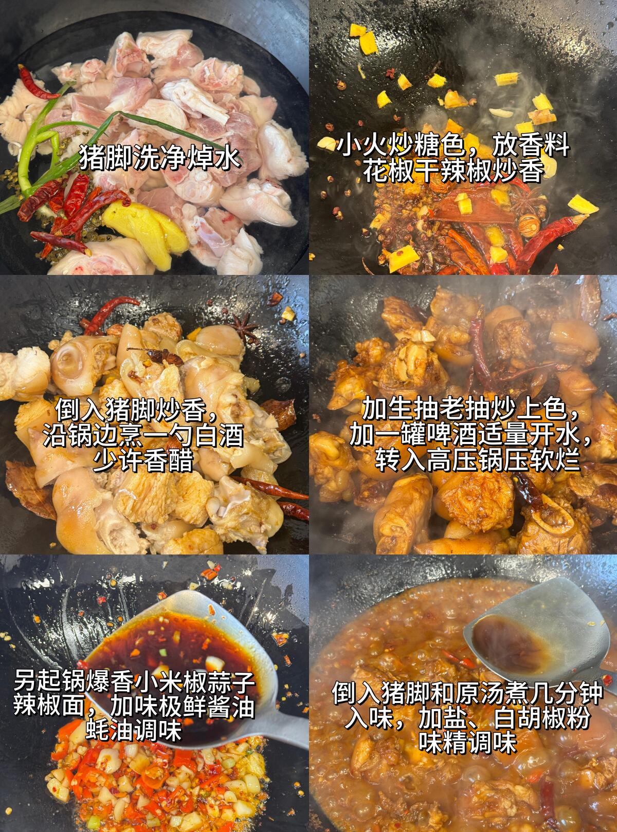 ✅食材:猪脚,小米椒,老姜,大蒜,干辣椒,红花椒,香料(八角桂皮香叶陈皮砂仁),香葱