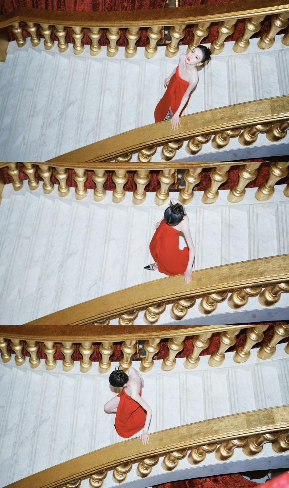 宋祖儿 x Valentino红色造型更是美艳,同一天把大红大绿两大色调演绎得如