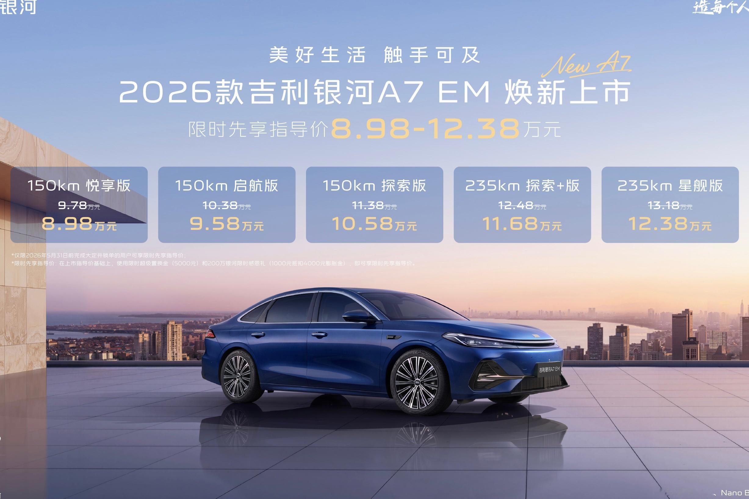 今晚,吉利银河A7 EV与2026款吉利银河A7 混动版也都上市了。