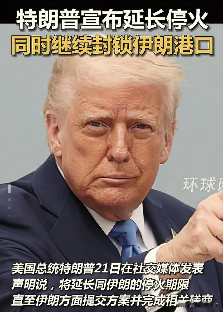 根据环球网报道称,美国总统特朗普在社交媒体21日发表声明说,延长伊朗的停火期限,同时继续封锁伊朗港口,直至伊朗提交方案并完成谈判为止。