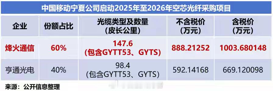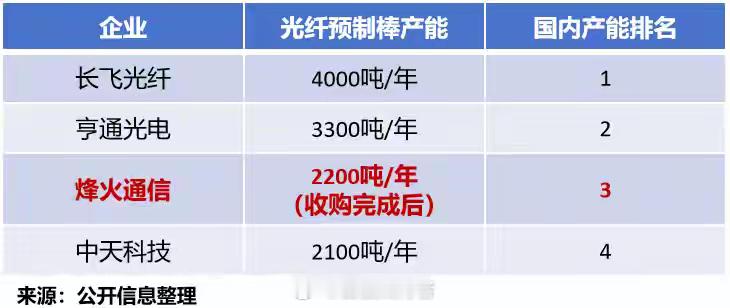 8亿大并购,光纤独角兽,无可替代!光纤,炸出一个全能选手!说到光纤光缆,长飞光纤、亨通光电和中天科技“三巨头”早已深入人心。但有一家老牌厂商,用二十余年的深耕细作,打出了一张独一无二的王牌。它,就是烽火通信。不禁好奇,烽火通信的这张王牌是什么?答案,就藏在公司的业务布局里。从营收结构来看,公司目前构筑了三块核心业务。2025年半年报显示,公司通信系统设备营收占比高达78.51%,光纤线缆占18.02%,数据网络产品占1.98%,三者合计占比超98%。这看似是三大业务,其实是公司构建起了从上游材料到中游产品再到下游解决方案的全产业链能力。那么,烽火通信是如何做到的呢?第一板斧:并购整合。想要打通全产业链,靠单打独斗太难了。因此,烽火通信选择了一条快车道:并购整合。早在2014年,公司便以7.5亿元全资收购了南京烽火星空,将业务从光通信设备延伸至网络信息安全领域。2018年,借“大唐-烽火”合并之机,公司又以1.37亿元收购了成都大唐线缆剩余股权,以进一步整合现有线缆板块。如果说前面两笔并购是“布阵”,那么下面这一步就是“闭环”。2026年4月,烽火通信宣布拟以7.5亿元收购烽火藤仓剩余40%股权。此次收购完成后,公司光棒总产能将从1960吨/年增长至2200吨/年,光棒自给率也将从80%跃升至100%,彻底实现从光棒到光纤的产能闭环。那么,烽火通信为何要向光棒环节布局?光棒(全称“光纤预制棒”)是整个光纤光缆产业链中最核心、最关键的环节。从成本构成来看,光棒成本占到光纤总成本的65%;而从利润分配来看,光棒环节更是独揽了行业约70%的利润。这就意味着,谁掌握了光棒,谁就掌握了光纤的定价权和利润分配权。第二板斧:技术攻坚。光通信这个行业,光靠并购整合还不够。企业能不能站得住、走得远,最终还得看技术硬不硬。烽火通信自成立之初,就奔着攻克光纤通信“卡脖子”技术而去。2020-2025年前三季度,公司累计投入研发费用近190亿元,研发费用率也稳定在10%以上。其中,2025年前三季度研发费用率升至13.91%,创下近年新高。真金白银砸下去,成果自然也看得见。2025年,烽火通信联合头部企业和高校,研制出国内首套端到端全链自主可控的800G高速光传输设备,彻底解决了800G光传输技术的“卡脖子”难题。值得一提的是,烽火通信并没有把所有筹码押在一条路上。在传统业务稳扎稳打的同时,公司在空芯光纤等前沿技术上也实现了突破。2025年8月,公司自研的空芯反谐振光纤,在1550nm波段实现衰减≤0.2dB/km;随后在12月,技术再次突破,同波段最低衰减值降至0.063dB/km。凭借技术上的先发优势,烽火通信以60%的份额,拿下中国移动宁夏公司2025年至2026年空芯光缆采购项目。前沿不落下,深海也通吃。在海洋通信领域,公司是全球唯一自主打通芯片器件、设备、光棒海纤海缆、海洋工程装备四大核心技术领域的企业。正是这种全面的本事,让公司光纤线缆的毛利率持续走高。2020-2024年,公司光纤线缆毛利率从16.31%一路攀升至25.35%。其中,在2023年,该业务毛利率首次反超通信系统设备。第三板斧:深入下游。真正让烽火通信在市场稳住脚跟的,是它深度切入下游的能力。与大多数厂商止步于“卖设备”不同,烽火通信提供的是软硬一体、网算融合、安全可控的一体化解决方案。以2025年上半年为例,公司光网络中标移动普缆、电信PON等集采项目;FTTR出货量持续提升,获取多个工信部万兆光网试点。与此同时,公司还在积极拓展海外市场。2025年上半年,烽火通信光网络、光宽带产品在东南亚、美洲、非洲等市场相继突破,海外业务实现营收37.83亿元,同比增长13%,占总营业收入比例超过34%。凭借深耕下游市场的优势,烽火通信敏锐捕捉到客户在算力基础设施上的新需求,顺势切入算力赛道。目前,公司算力相关产品小有所成。2024年,公司在服务器领域干了几件大事:自主研发高性能扩展型智算服务器,自研首个超算集群部署,还突破了高端液冷服务器的全链条技术。到了2025年上半年,这些技术积累开始转化为订单——公司服务器产品先后中标中国铁塔、联通数科等项目。写在最后!所谓的“全能”,并非一日之功。烽火通信用二十几年的时间,通过并购、攻坚、合作三步棋,硬生生打通了从芯片、光纤到系统的“任督二脉”。
