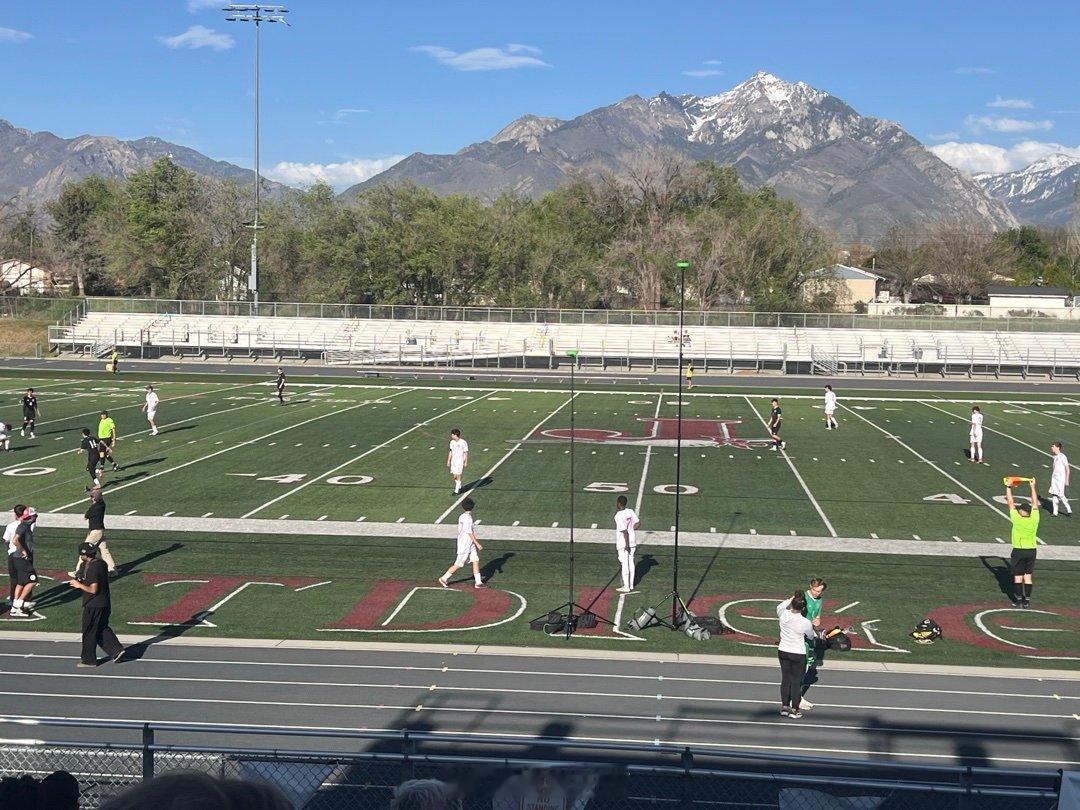昨天下午去看了小外孙踢球。美国人的爱国做得到家,普通高中学生球赛,开赛前奏国歌,所有人起身对着国旗站立。