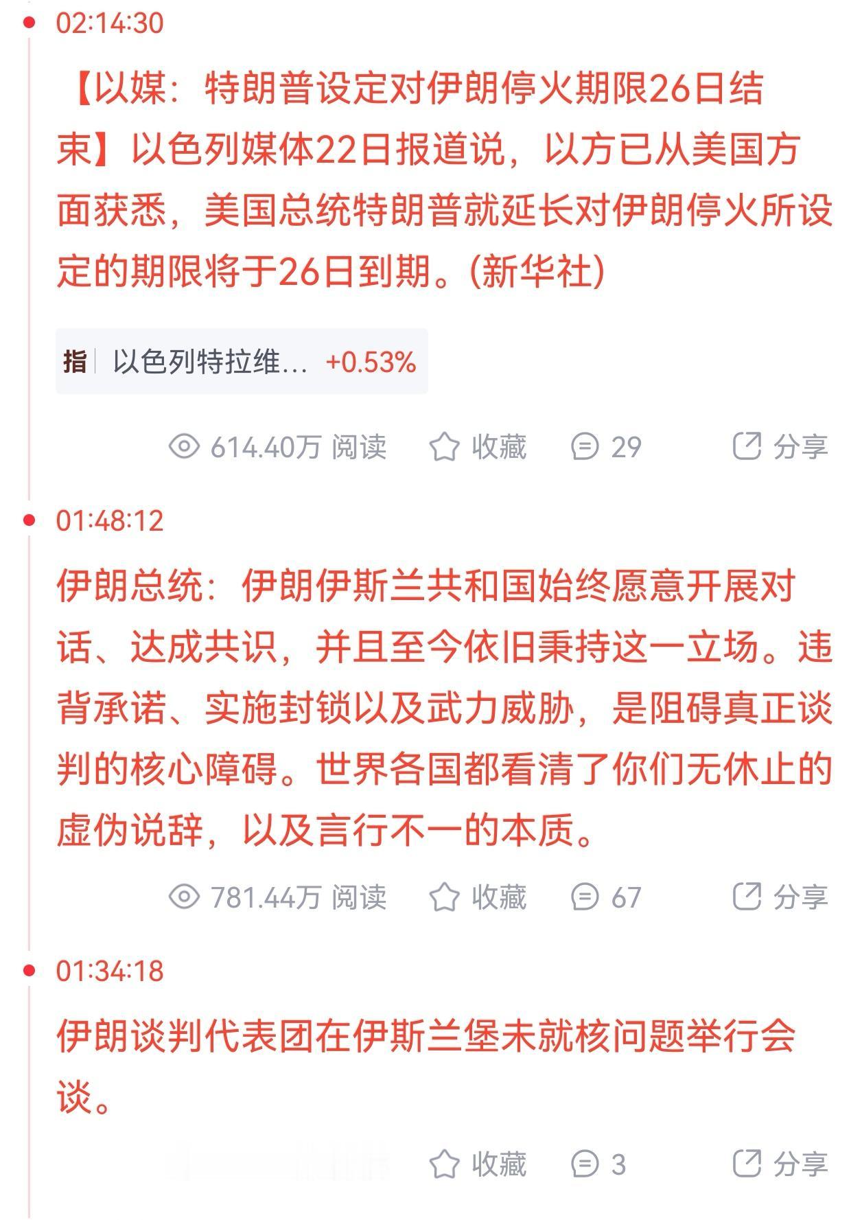 有意思的是,特朗普这边反手就放了个利好,说预计伊朗外长会继续参与美伊谈判,给市场续了口预期。而以色列那边又爆出消息,特朗普设定的对伊停火期限到26号就结束了。