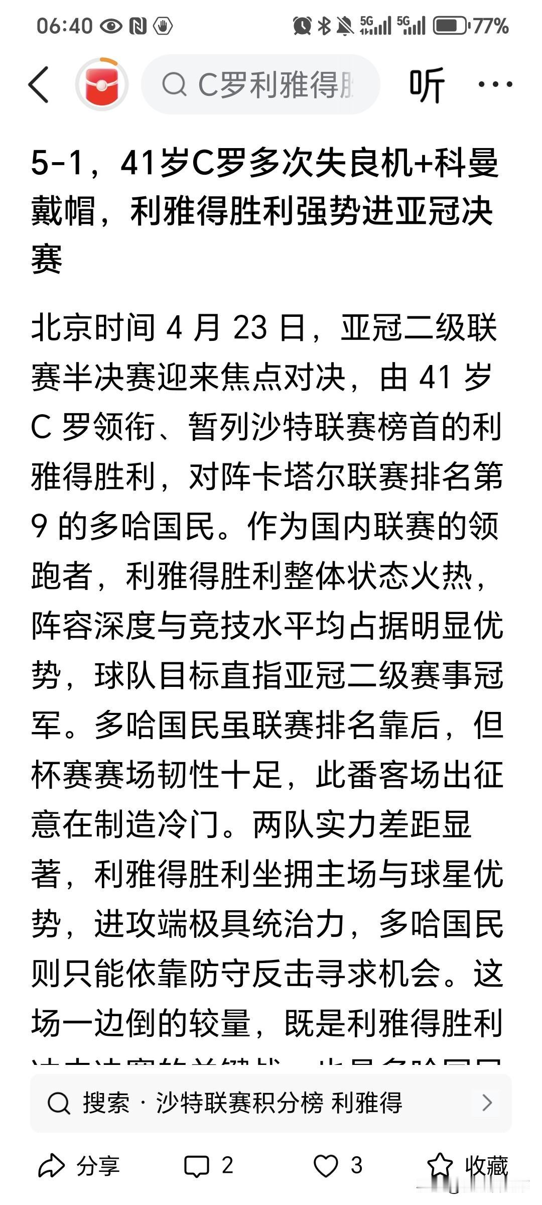 C罗又赢了!利雅得胜利5:1大胜多哈国民,赢得酣畅淋漓,唯二遗憾就是C罗没有进球,并且C罗还被提前换下了场。