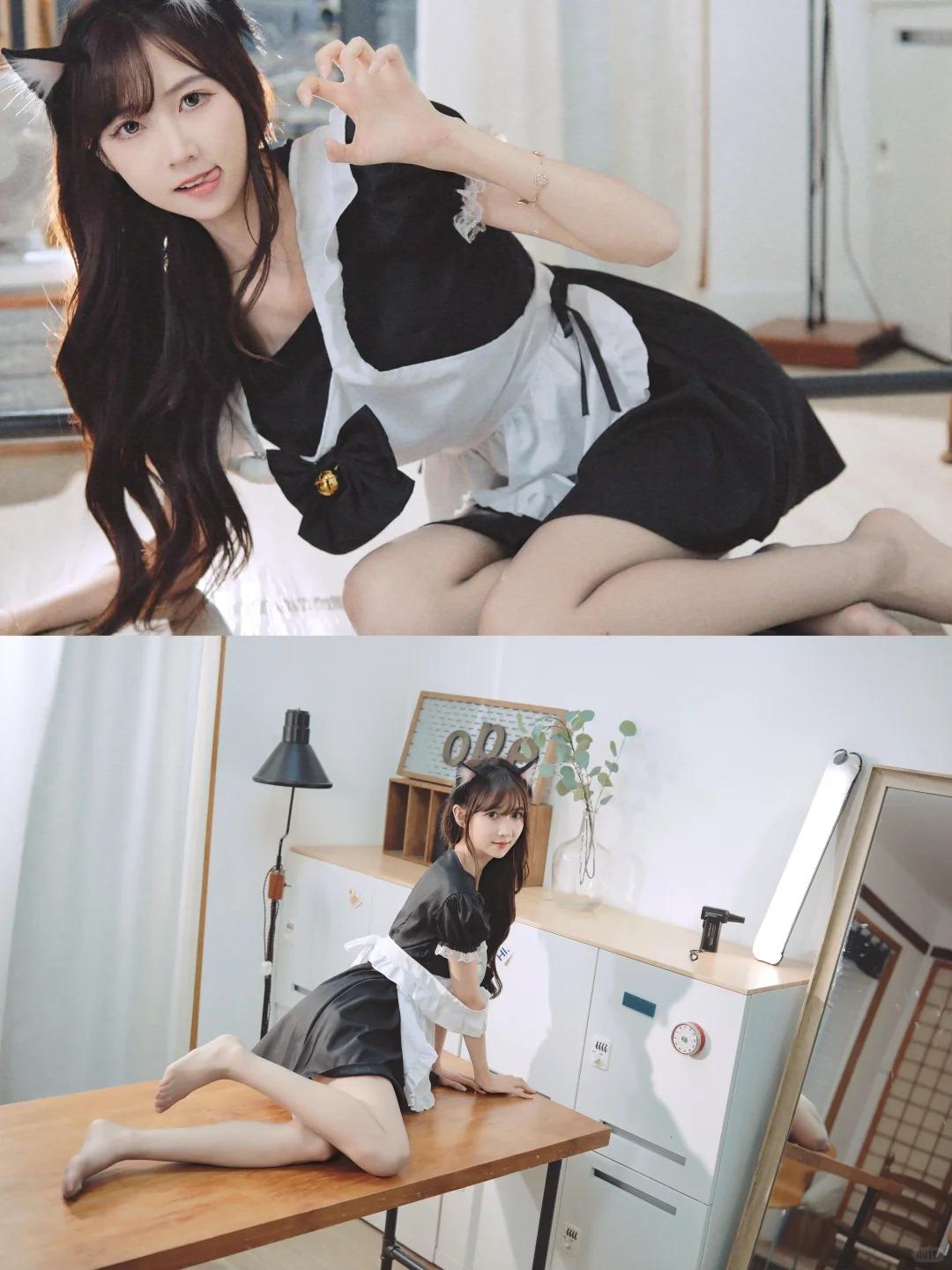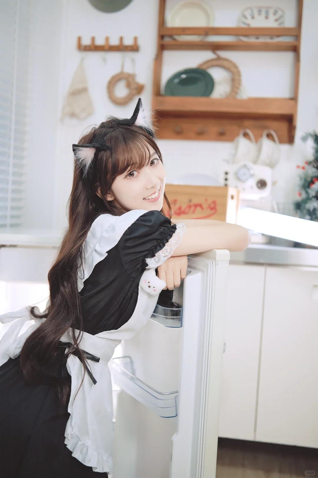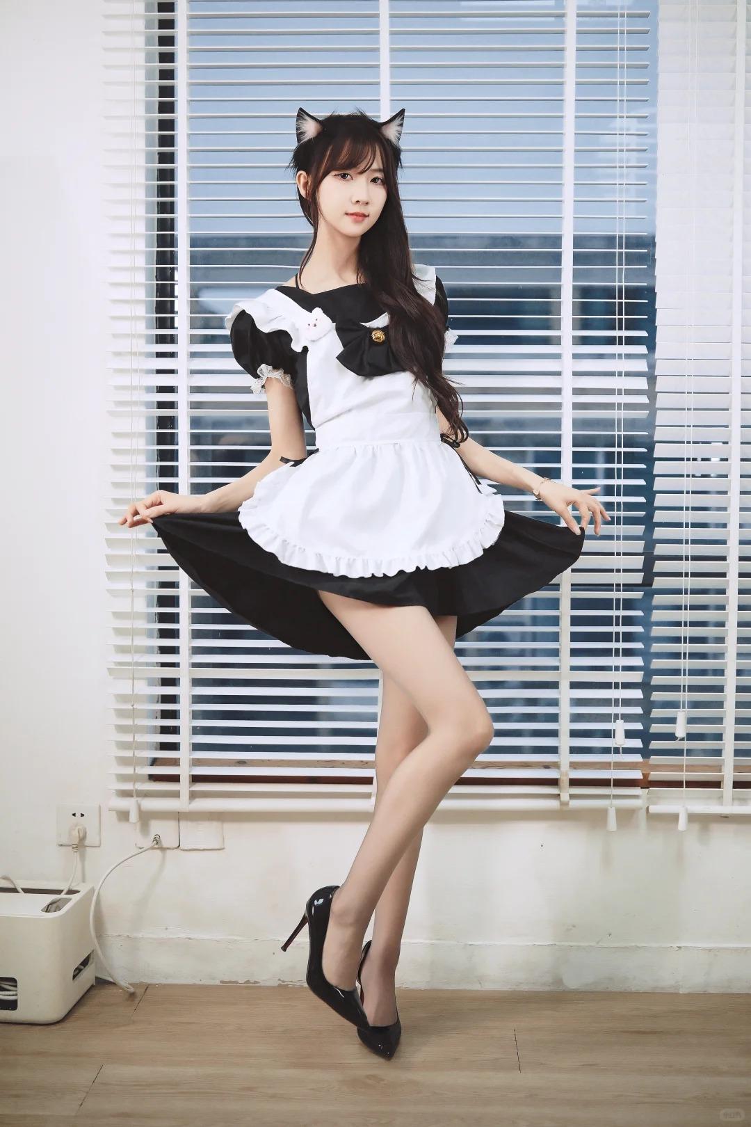 【今日猫系女仆写真 OOTD✨】 老板,请问家里缺个会卖萌的佣人吗?今天穿了软乎乎的女仆装,配上猫耳发箍,瞬间变身听话又会撒娇的小猫咪~黑白配色经典又可爱,蕾丝花边细节拉满,穿上感觉连打扫卫生都变甜了!