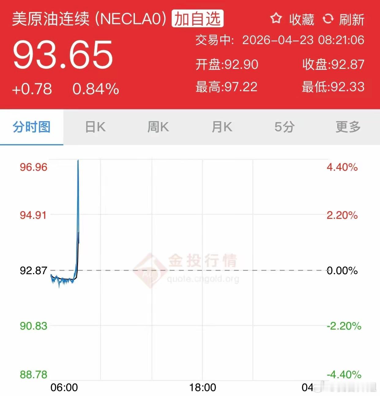 金银油都涨了4月23日星期四早上最新黄金原油消息黄金:现货黄金(截至4月23日早上8:21)最新下跌0.21%至4728.48美元/盎司(盘中最高触及4744.99美元),国际暗金最新报4713.65美元/盎司,国内AU9999现货价1042元/克。原油:WTI原油上涨0.84%,报93.65美元/桶;布伦特原油101.84美元/桶。黄金下跌,原油有所上涨,黄金原油接下来走势会是怎样呢?评论区说说你们的看法。