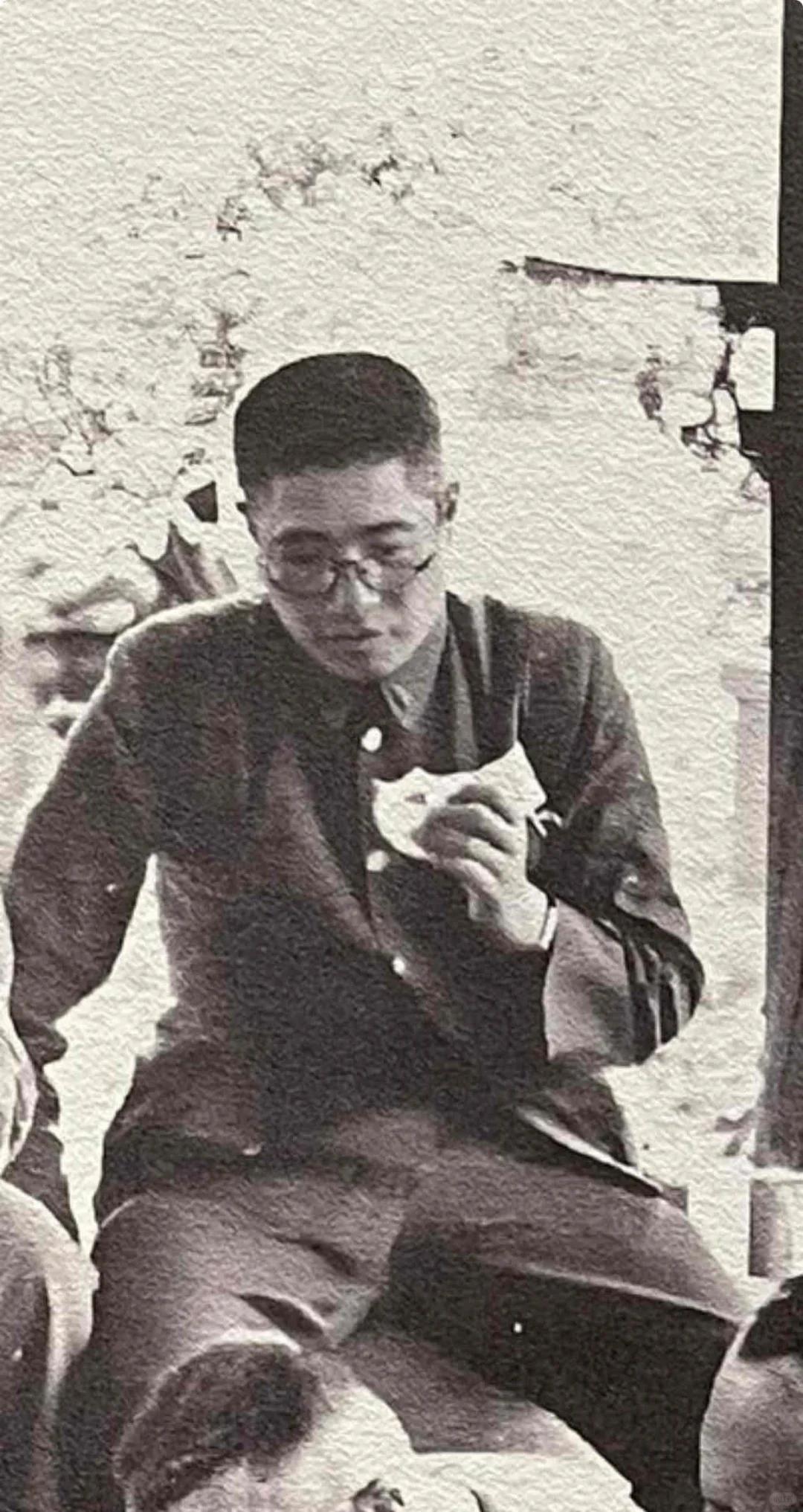 画面里戴眼镜、气质文质彬彬,看着像书香学院才子,埋头认认真真干饭啃饼子的就是大名鼎鼎的缅北战神廖耀湘。