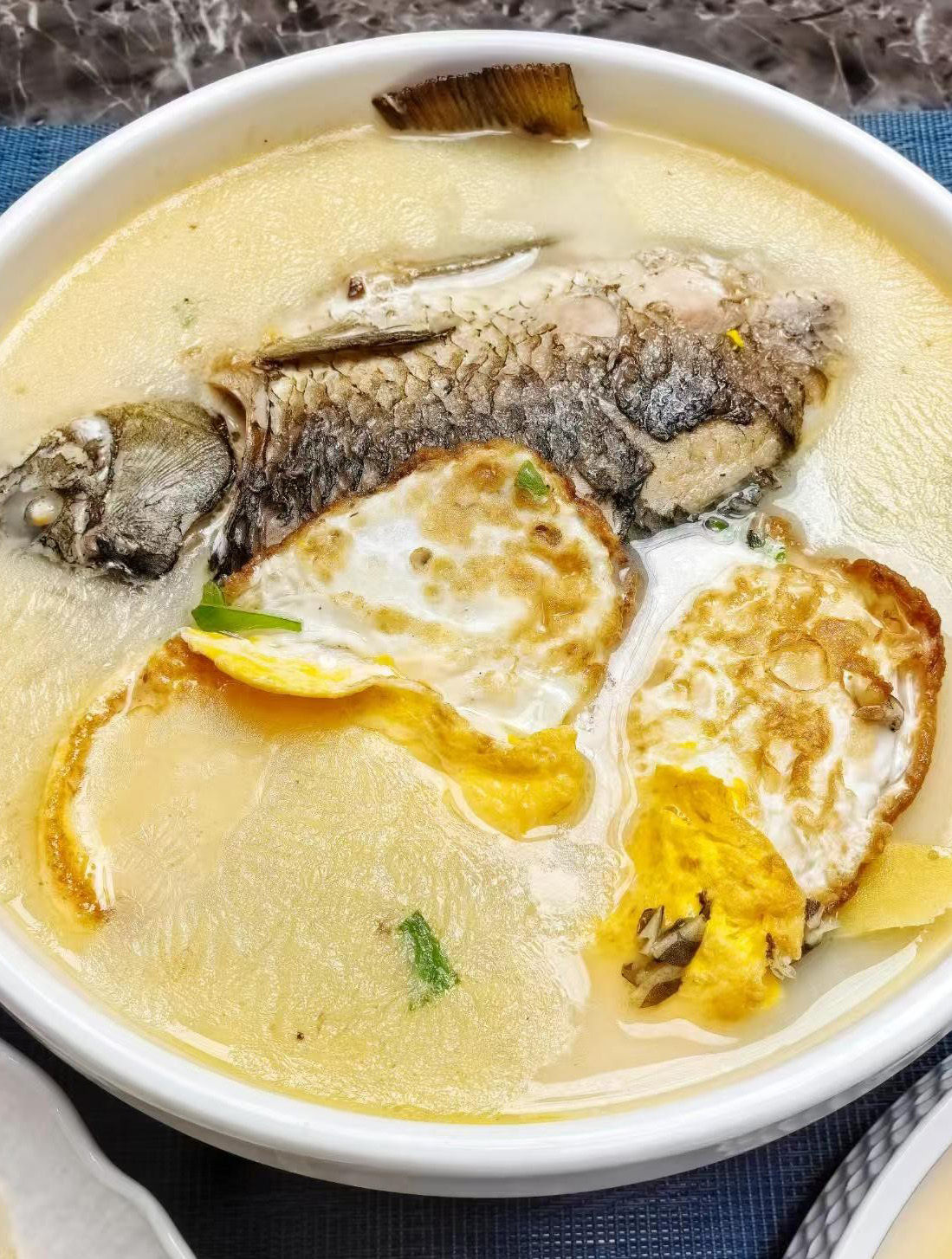 👉 做法:鲫鱼煎到两面金黄,加足量开水(汤才会白),放姜片,大火煮5分钟;白萝卜切丝加入,中火再煮10分钟,加盐、白胡椒粉、葱花。
