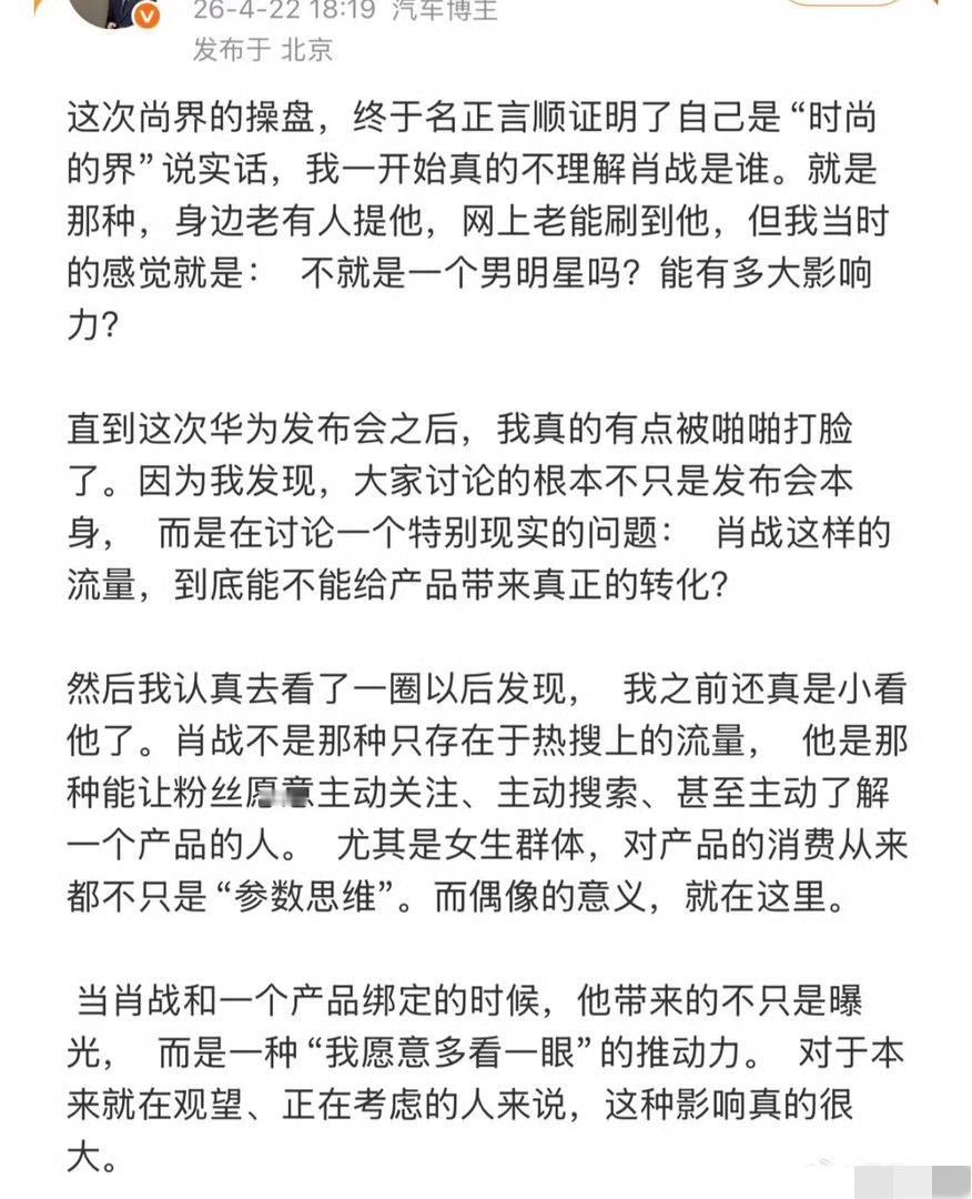 自从尚界预热肖战代言之后,我和好多人一样,终于搞明白了五个界是什么,我甚至还刷到科普汽车电池的,撞击实验啥的,真的是让我知道了自己以前不会去留意的领域[笑哭],这几天好像也有其他汽车新款宣发,但是我看到,刷到,听到的只有尚界[呲牙][呲牙][呲牙]
