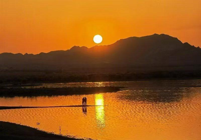 近日,在甘肃民勤,水库映霞,气象护航,守住民勤这方生命水源。(图/文:柴斐仙)