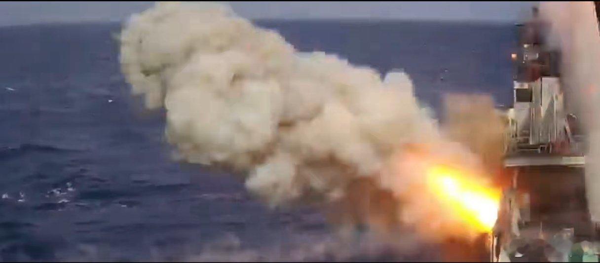 鹰击18亚超结合弹对靶船上层建筑的打击效果。