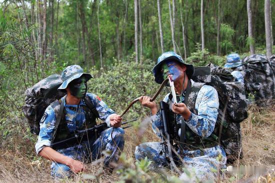 体能这块,他们的标准相当严苛。在海拔近2000米的山岳丛林中,官兵要背负25公斤的作战背囊,在18分钟内完成落差近300米、往返1900米的负重冲坡训练。丛林越野不仅要跑得快,还要跑得准,官兵们需要在高强度运动后快速辨别方位,在植被遮天的密林中找到预定路线。