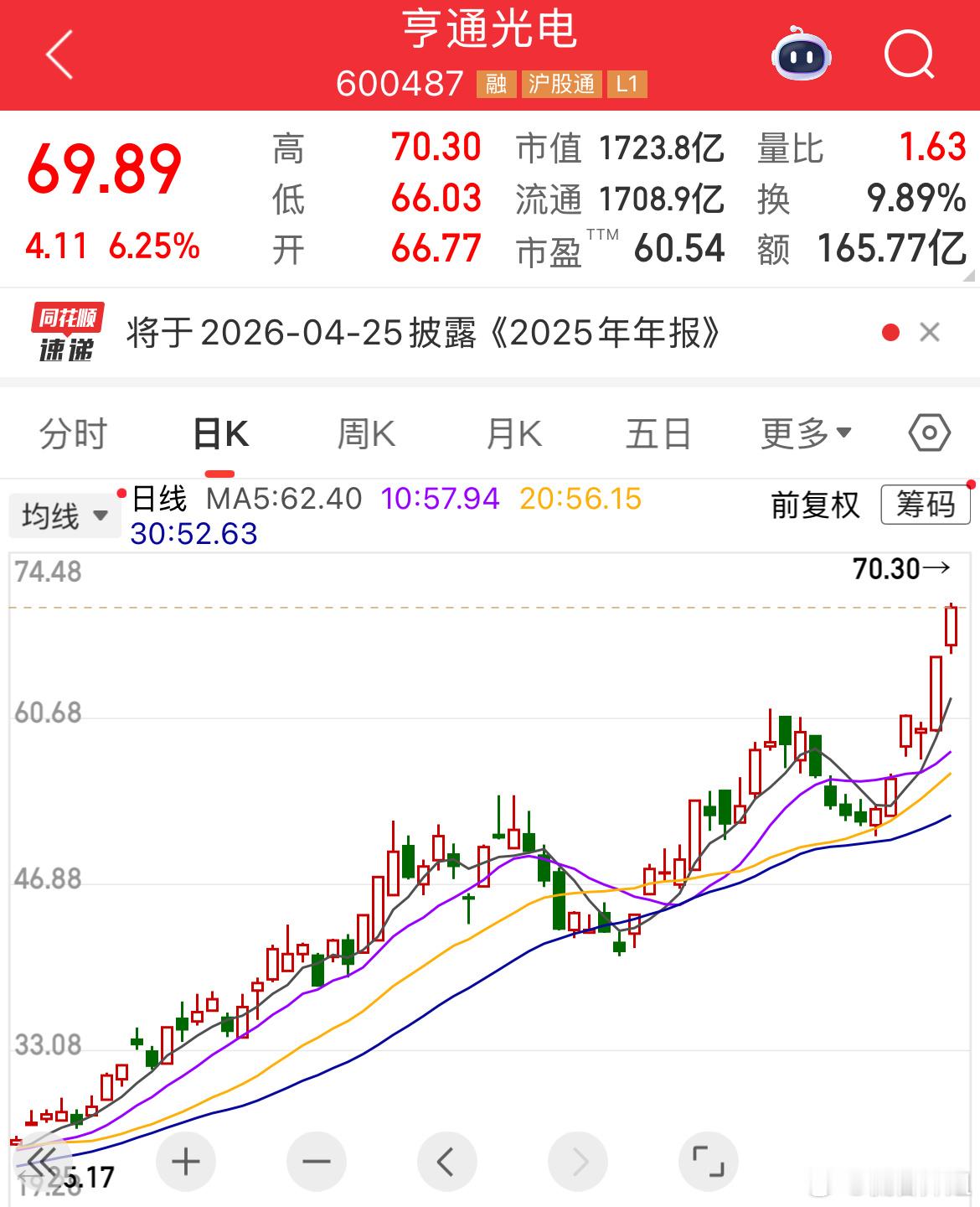 4.17$亨通光电 sh600487$ 昨天涨停,今日再飙升6个多点,太给力了A股今日看盘