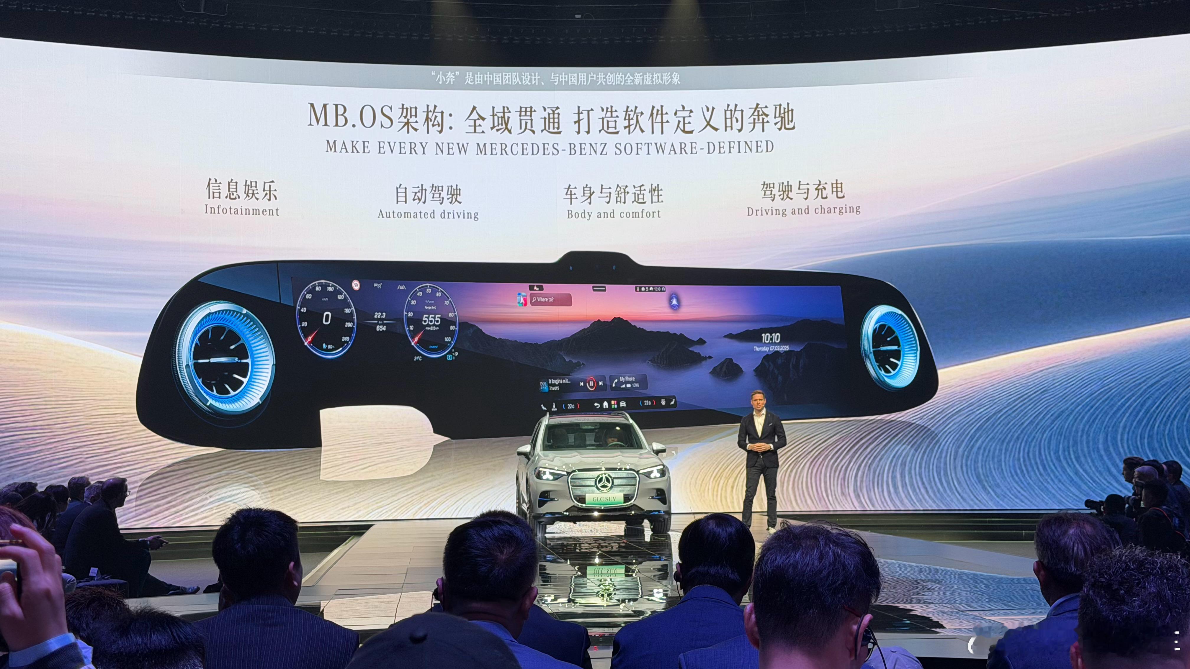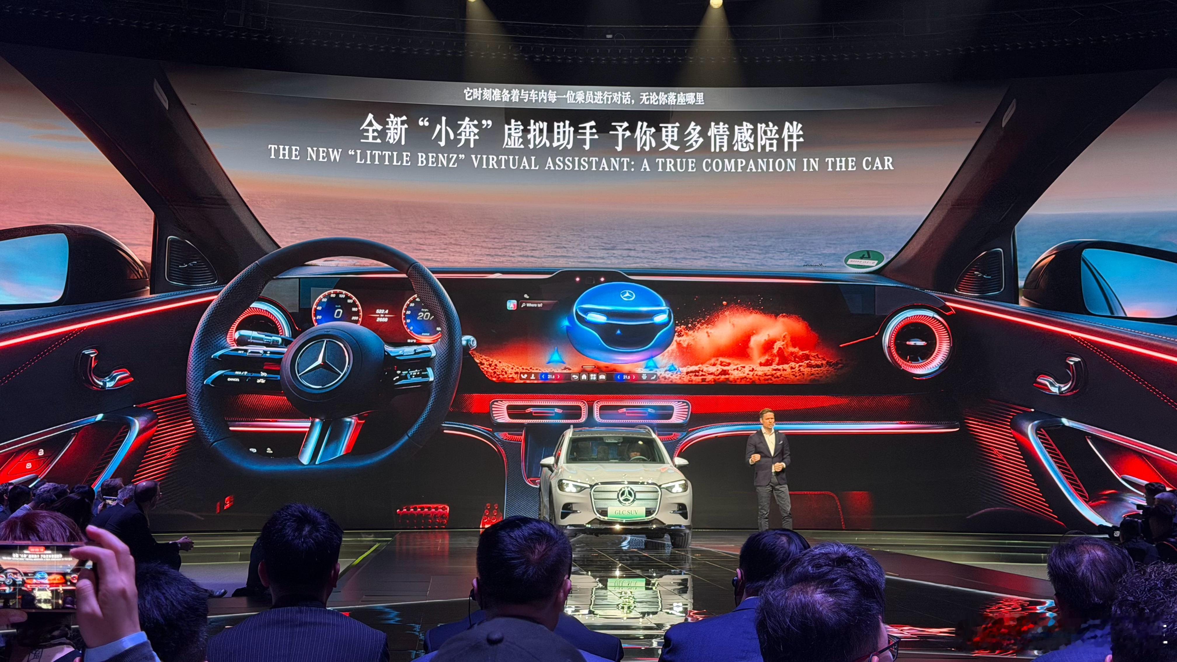 中国消费者已经见过了各种内饰各种大屏,但是奔驰的内饰每次一亮相,依然能惊艳全场前几天已经实拍了全新奔驰GLC的内饰,但今天在发布会大屏幕上看到这套大连屏,忍不住再次感叹真的太美了吧2026北京车展全新奔驰纯电GLC