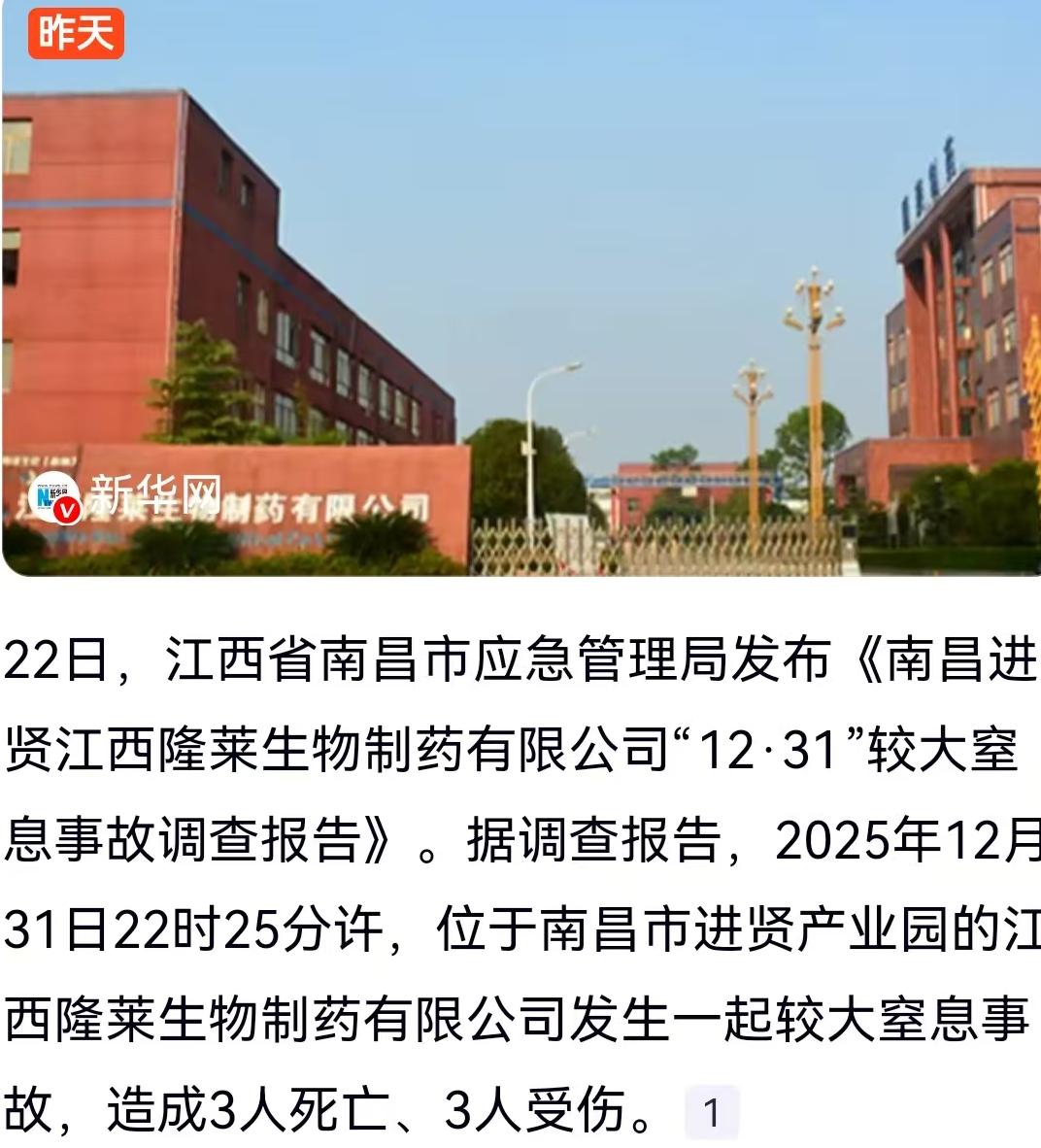 跨年夜的钟声本该承载着对新年的期盼,江西南昌进贤产业园内,一场突如其来的悲剧却将三个家庭的未来永远定格在了2025年的最后一天。南昌市应急管理局近期对外发布了江西隆莱生物制药有限公司“12·31”较大窒息事故调查报告,还原了那个令人痛心的夜晚。