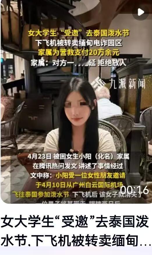 广东一所高校的大一女生,原本满心期待着一场异国狂欢,现实却给她和她的家庭兜头浇下了一盆冰水。受邀前往泰国参加泼水节,双脚刚踏出机场,直接被人控制,随后被非法转移至缅甸的电诈园区。这并非电影剧本里的惊险桥段,而是刚刚真真切切发生的一场噩梦。