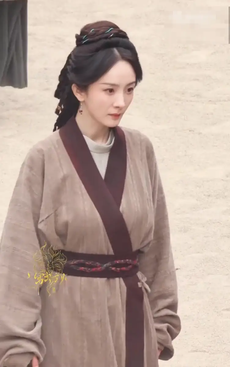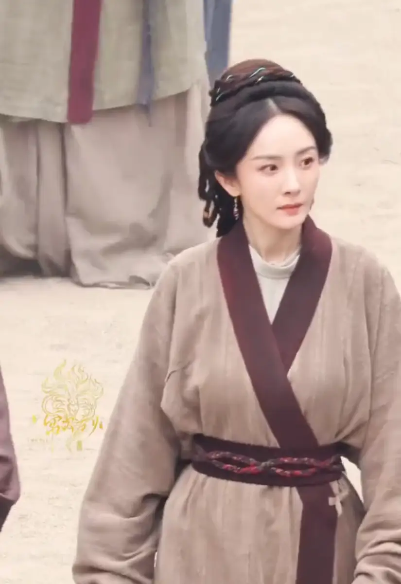 杨幂着素色襦裙典雅大气 长发盘起工作非常认真