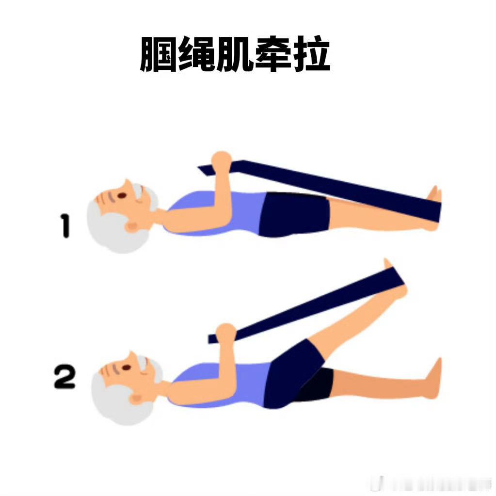 ✅2.【腘绳肌牵拉】——在腘绳肌训练后进行腘绳肌牵拉。——仰卧,通过胳膊力量用毛巾的拉力上抬,逐渐伸直腿部以达到拉伸效果,要注意根据自身柔韧性调整力度,避免过度拉伸。——拉伸保持30秒,牵拉2次/组。