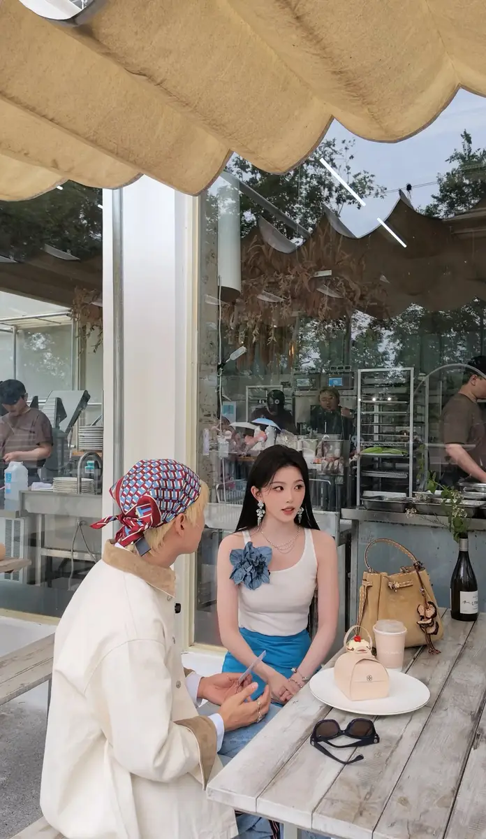 孔雪儿黑长直搭配一袭蓝裙 皮肤白皙五官如洋娃娃