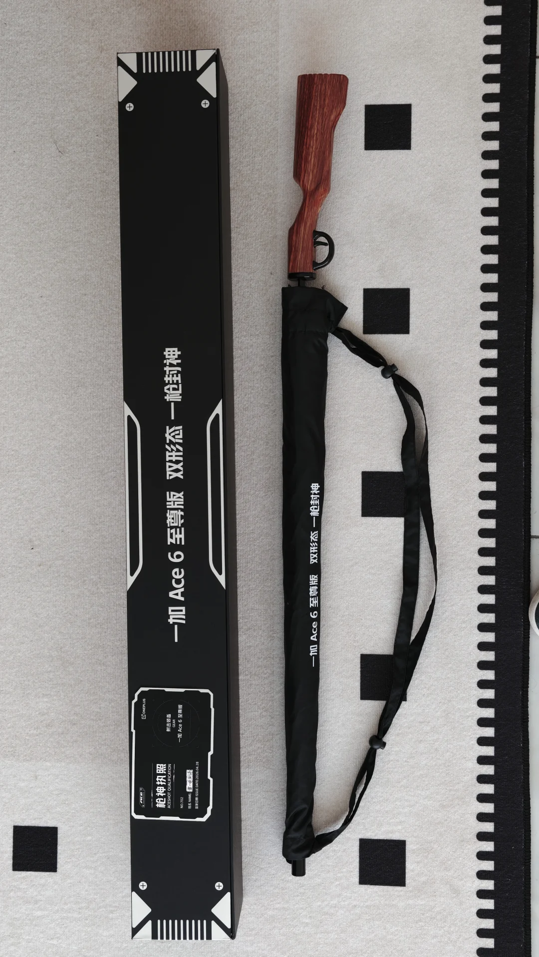 雷哥今天收到了一加Ace6至尊版邀请函,超大的礼盒,打开原来是一把复刻98K步枪点雨伞☔