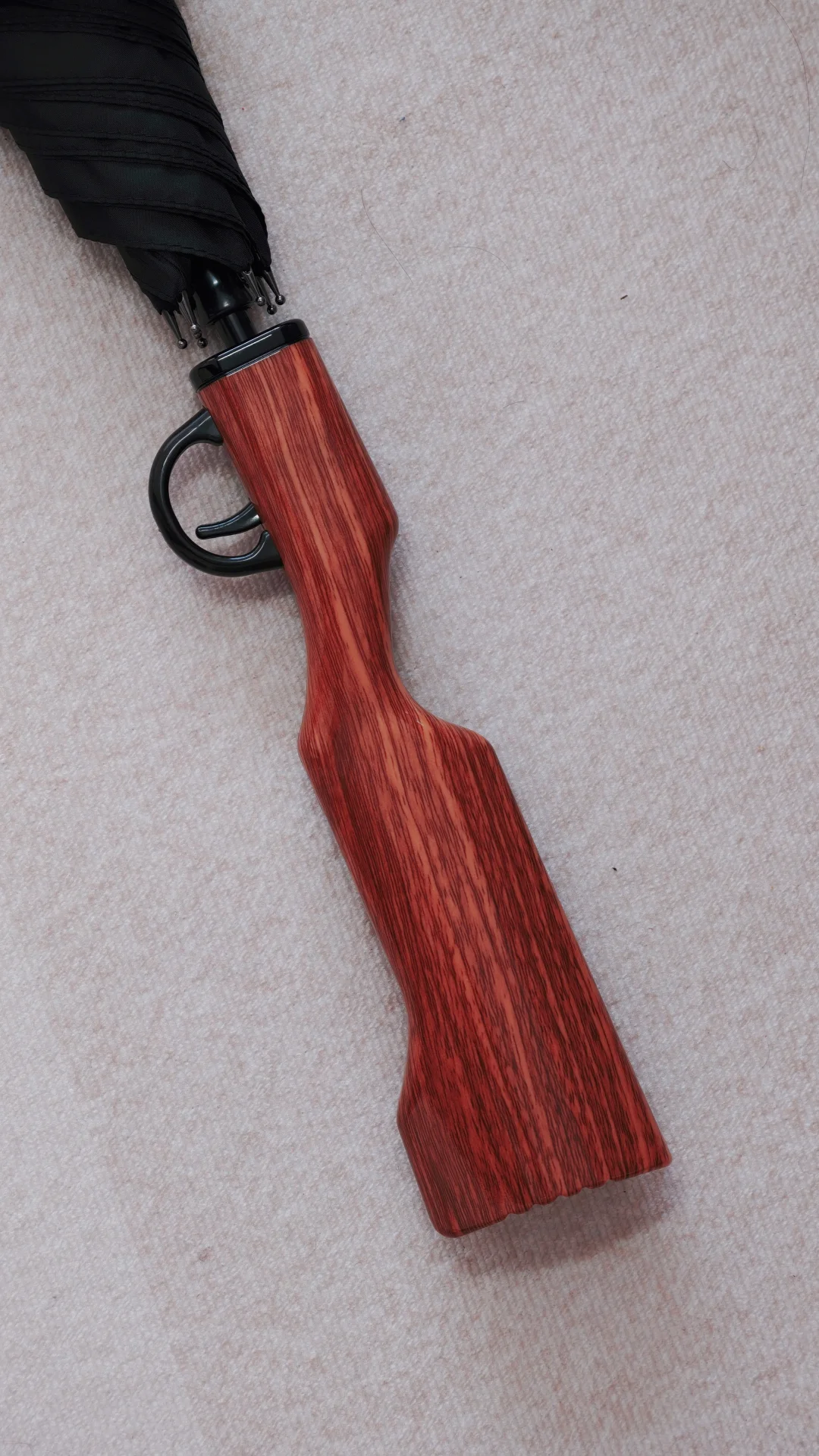 枪柄采用了仿木质纹理工艺,扣动扳机,即可打开雨伞!还有“枪神执照”卡片,真的很有那味儿~[派对R]