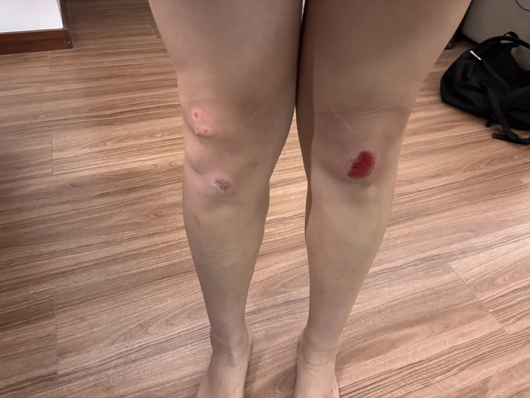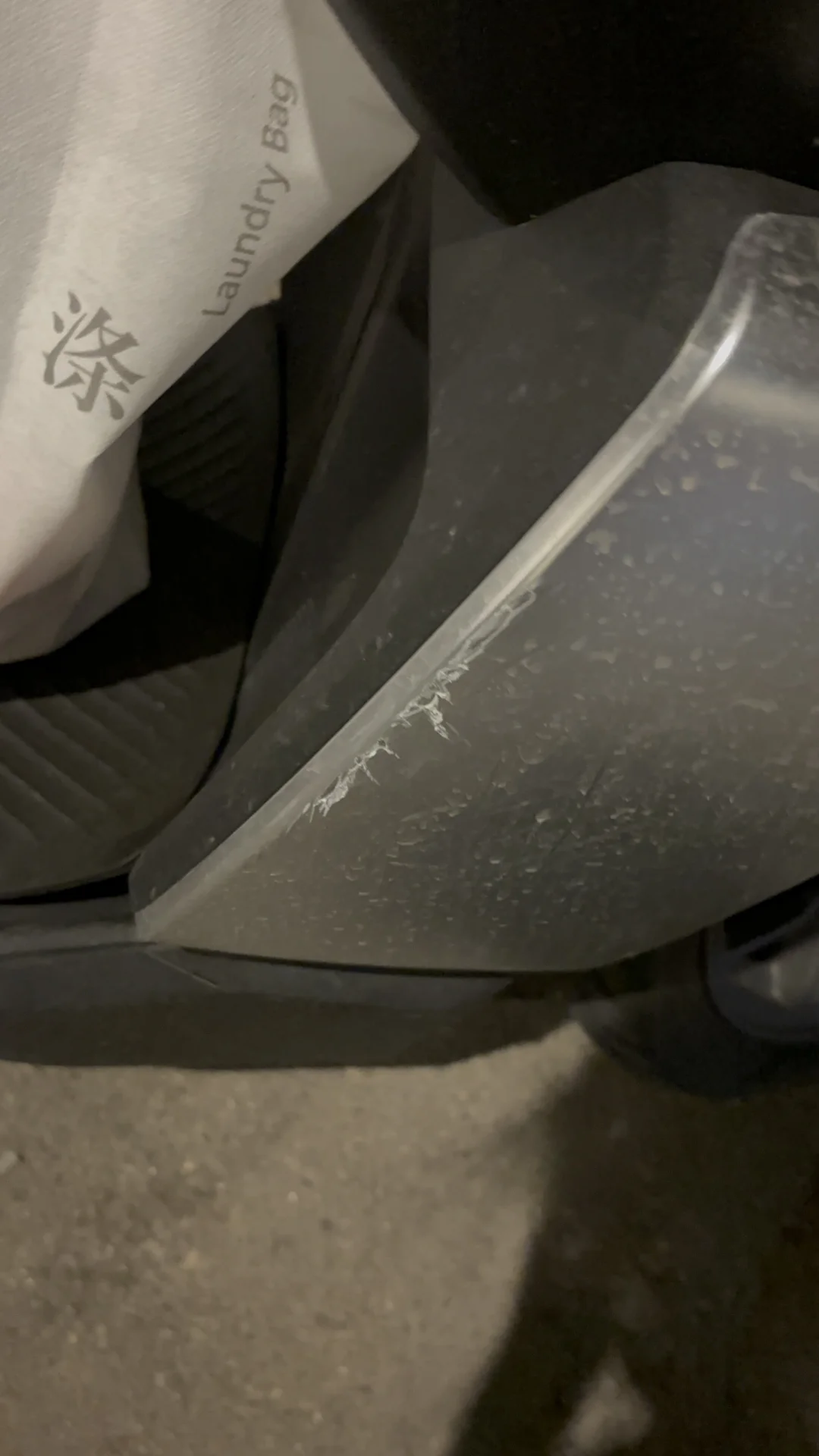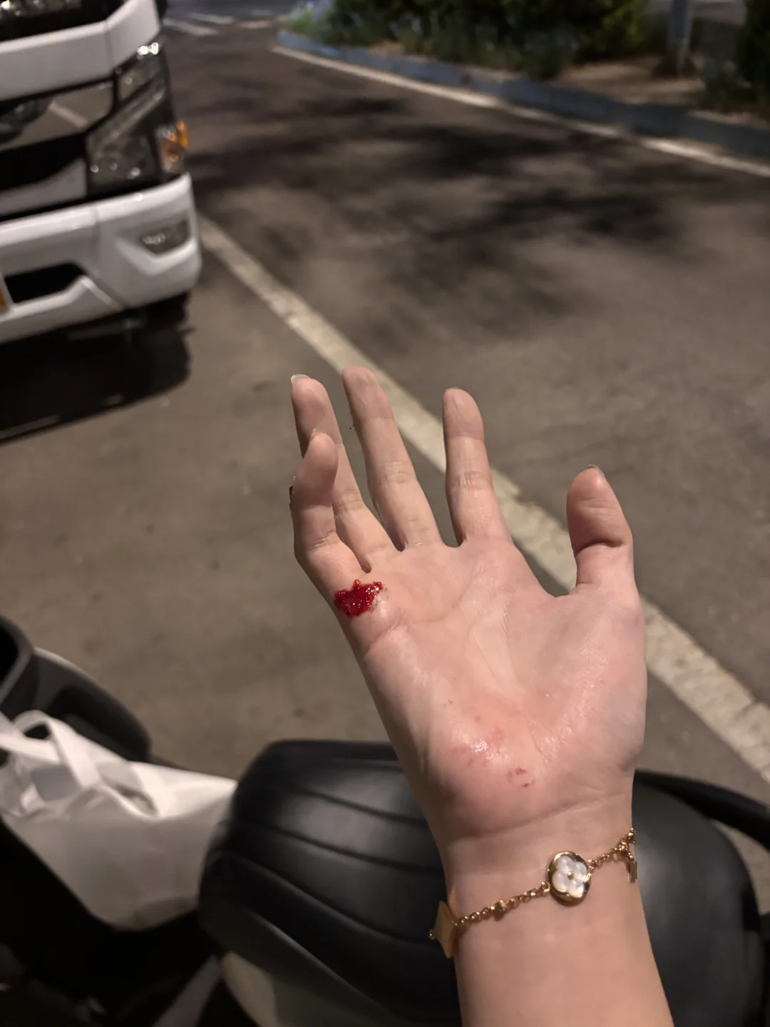 我被一个卡其色上衣,黑色后备箱的电动车撞了