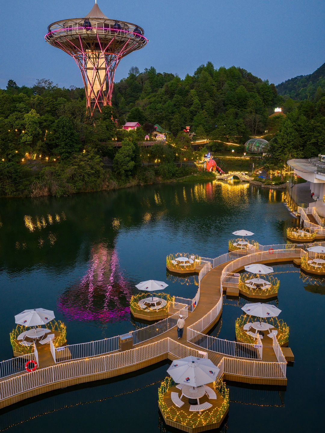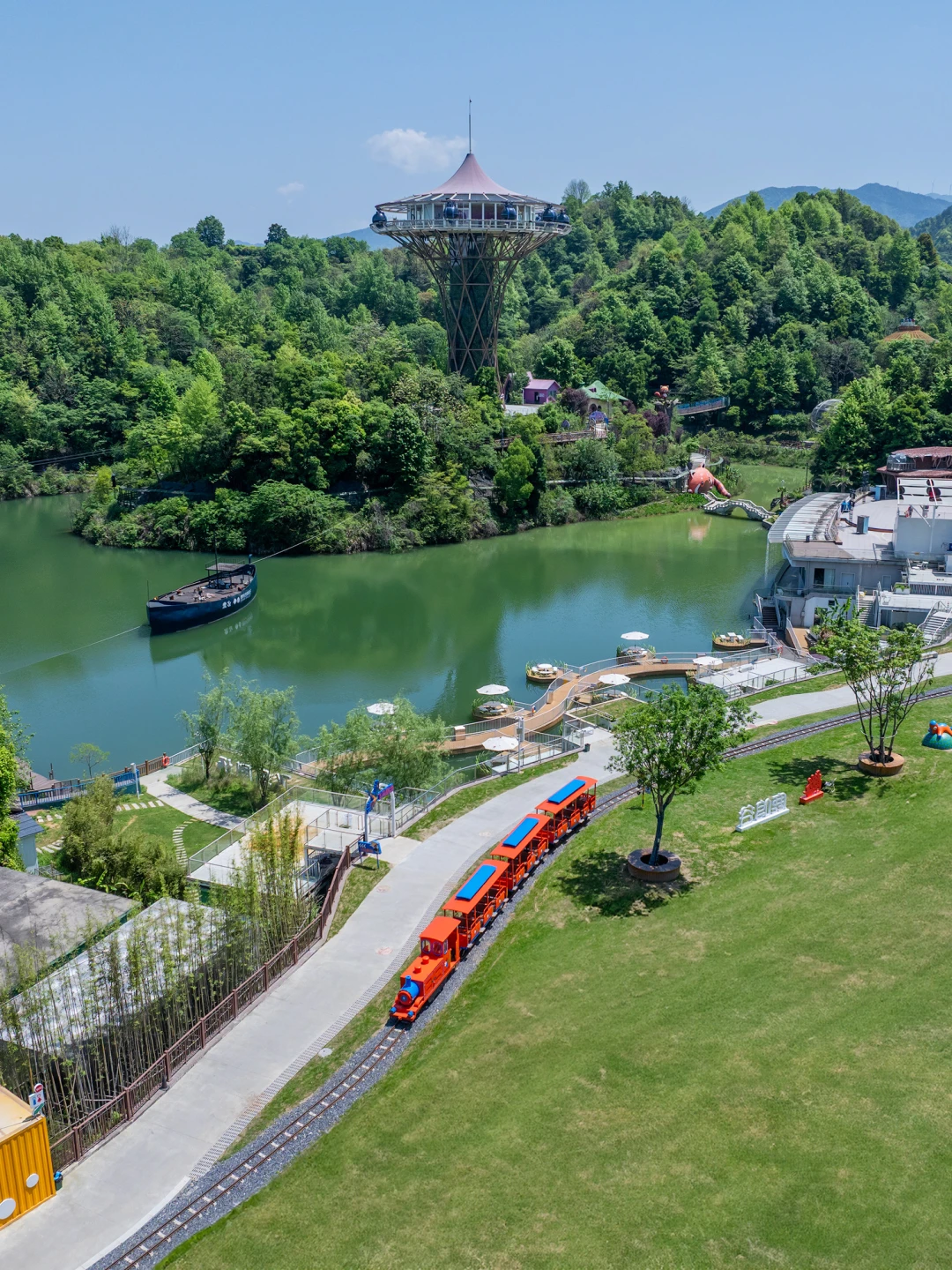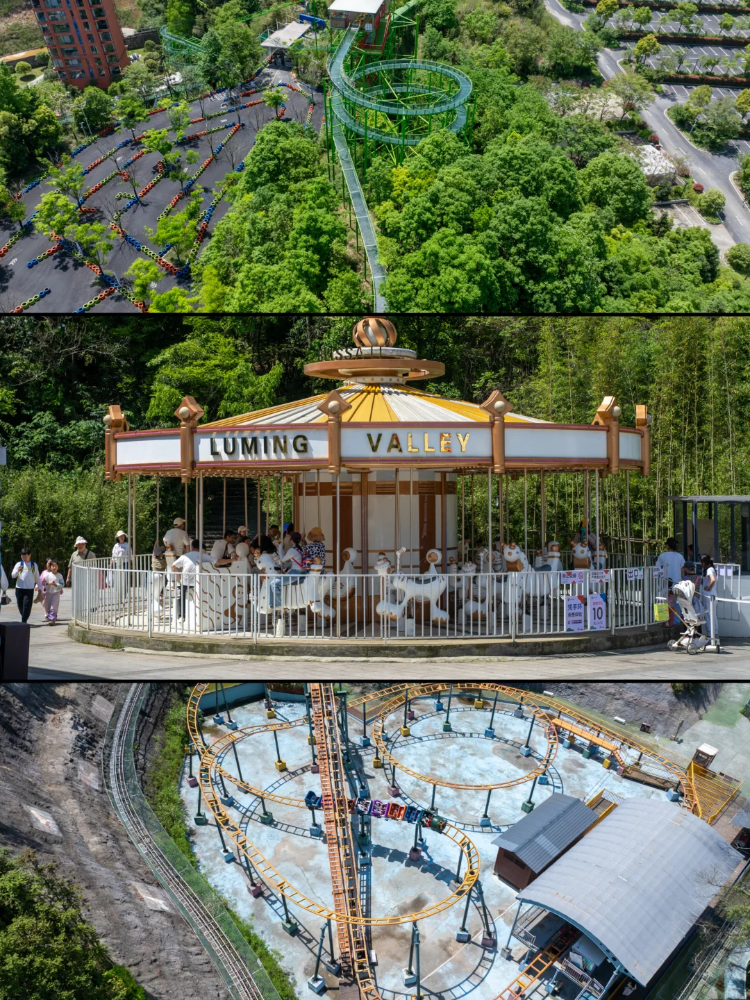 依山而建,边玩边看山野美景,丛林飞车、高空滑索、玻璃滑道、过山车…各种项目都可以体验
