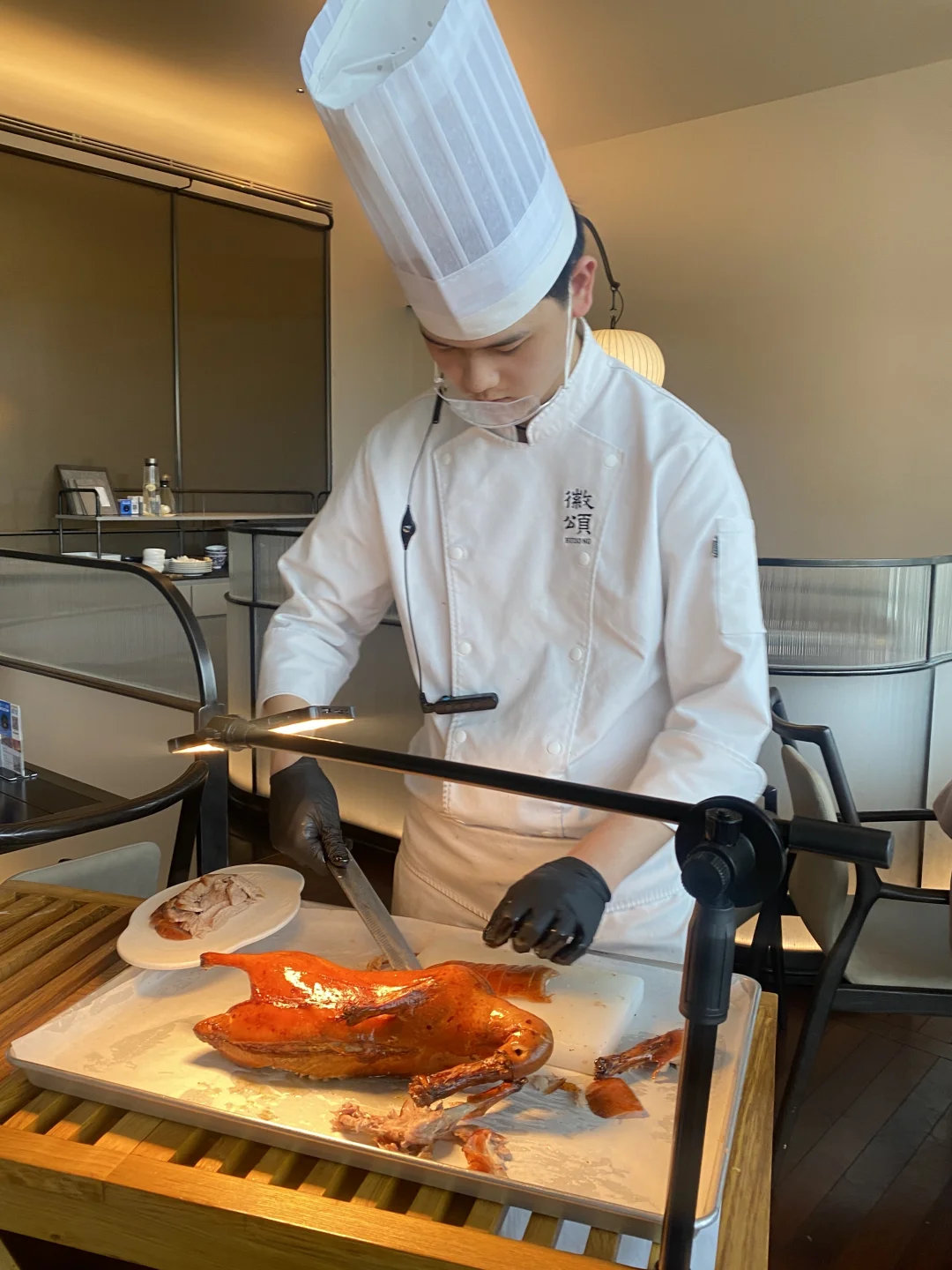 没想到在徽菜馆能吃到这么棒的烤鸭!鸭皮酥脆,饼皮卷上,满口留香。