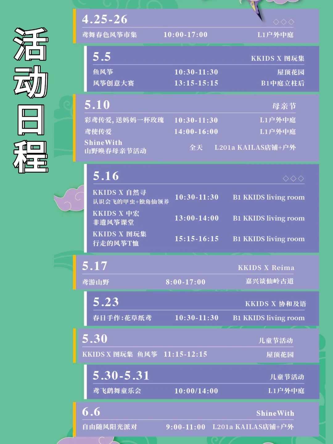 从 4.24 一直玩到 6.10,五一 / 母亲节 / 儿童节全覆盖