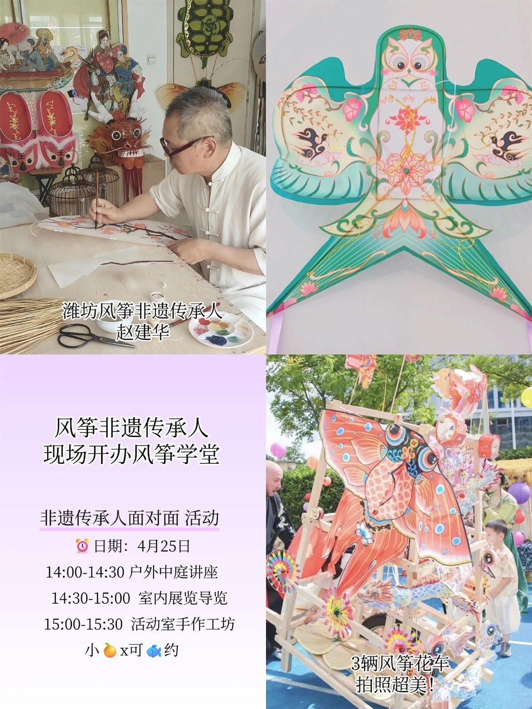 ⭐️更有非遗传承人空降现场授课,跟着非遗传承人现场学正宗风筝技艺,一键解锁三重互动体验: