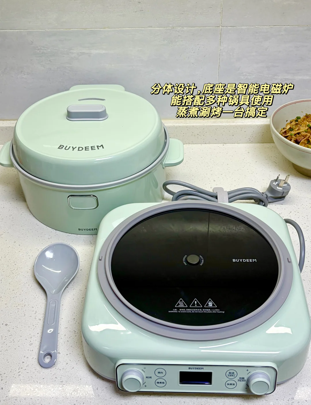 它最妙的地方就是分体式设计!合上就是电饭煲,取下煲体,底座直接变成电磁炉,各种锅具都能搭,真是非常的实用,加热速度很快,妥妥的隐形灶台~火锅烤肉都不在话下,简直是我这种懒人的福音啊~
