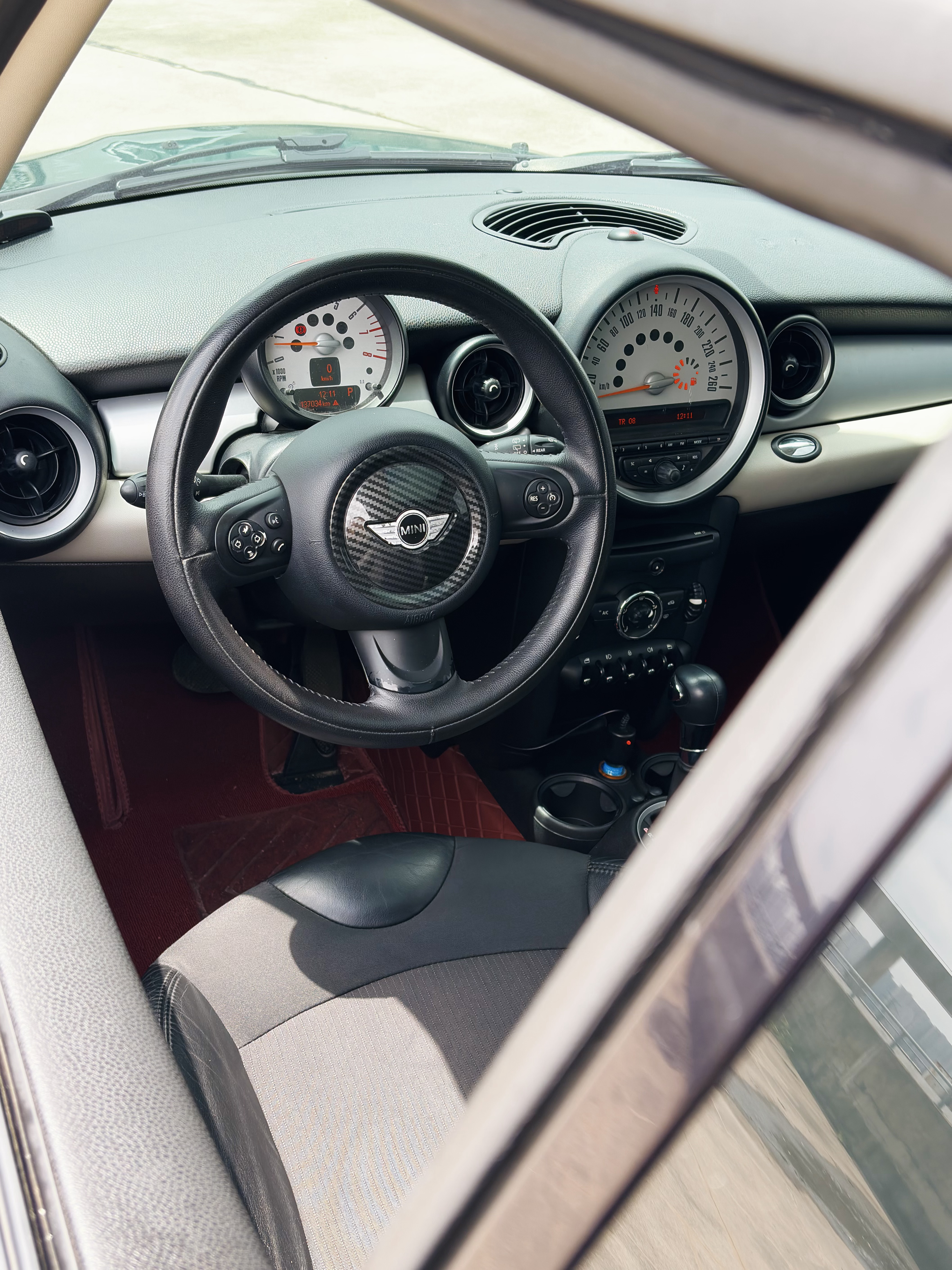 这个MINI是车主不久前买的,想着给老婆开,拿回去还花了9000做了大整备,包过大保养、全车隔音、玻璃膜、四条新避震等等。