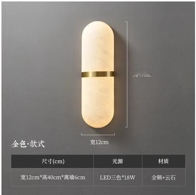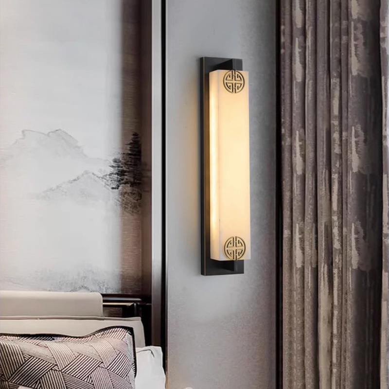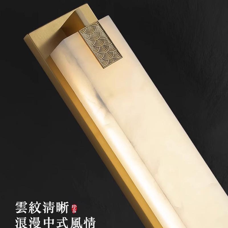 新中式全铜云石壁灯客厅电视背景墙现代简约卧室过道床头灯led灯