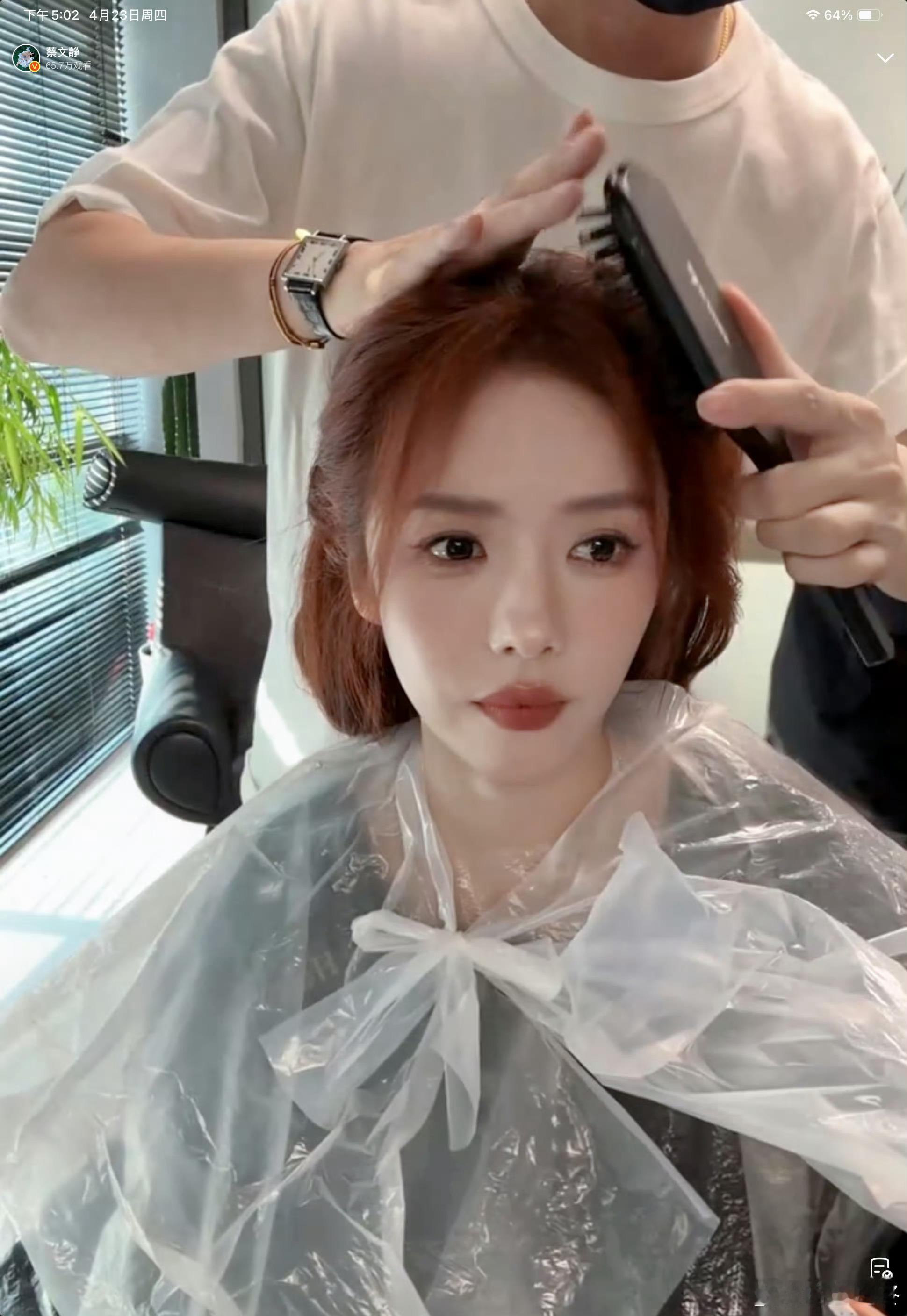 蔡文静直播染头发 蔡文静开启直播在线染发,全程随性又放松,实时记录发色更换全过程。素颜状态自然松弛,互动亲切接地气,一边染发一边轻松聊天,真实不做作的直播状态十分圈粉,随性日常氛围感拉满。