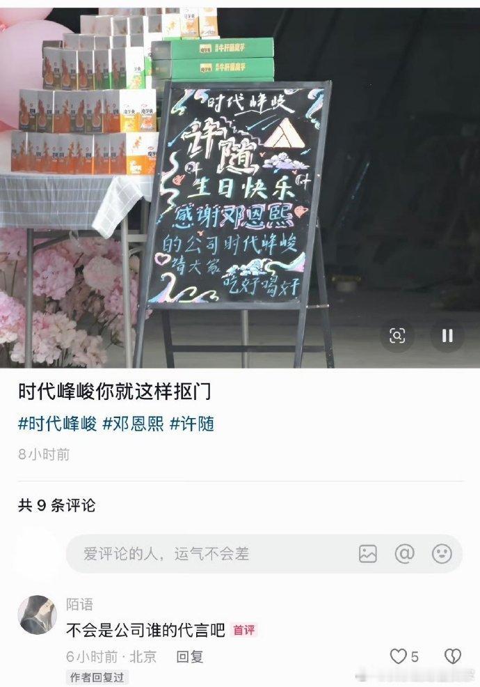 时代峰峻 吃好喝好魔芋爽邓恩熙在剧组过生日,公司安排请工作人员吃饭,口号喊得特别响亮要吃好喝好,实际上桌全是魔芋爽,自家代言硬凑排场,不愧是楼内专属省钱操作