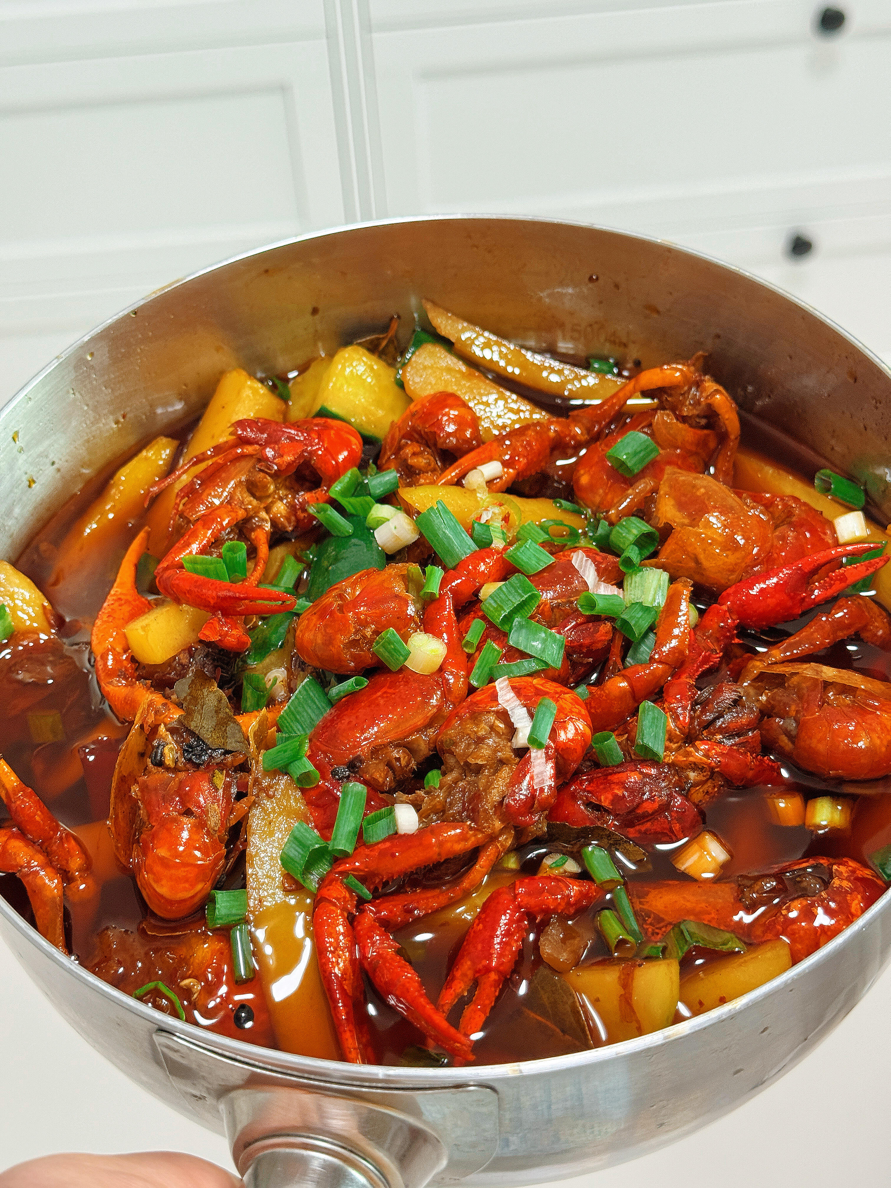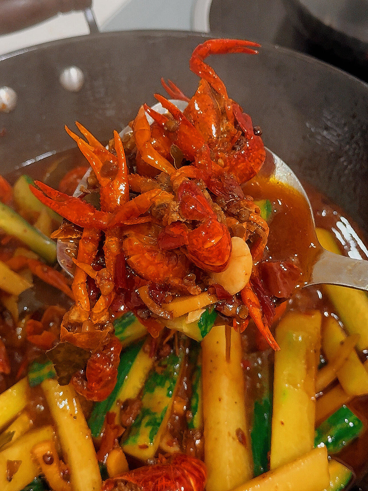 📜食材:小龙虾、姜蒜、花椒、土豆、黄瓜、好人家爆香油焖小龙虾调料