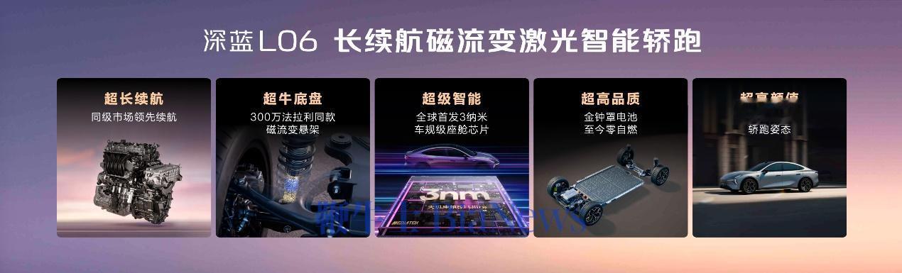 续航方面,深蓝L06增程版CLTC综合续航至高1505km、纯电续航至高245km,馈电油耗低至3.46L/100km(NEDC),兼顾动力与经济性,降低用车成本;底盘搭载磁流变悬架,可实现每秒千次阻尼调节,提升行驶稳定性与驾乘舒适性。不仅如此,深蓝L06增程版还搭载激光雷达与双地平线J6M芯片,配备全球首发3nm车规级座舱芯片,保障操作流畅度与导航精准度。