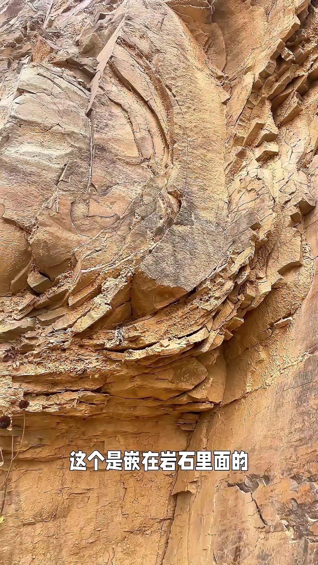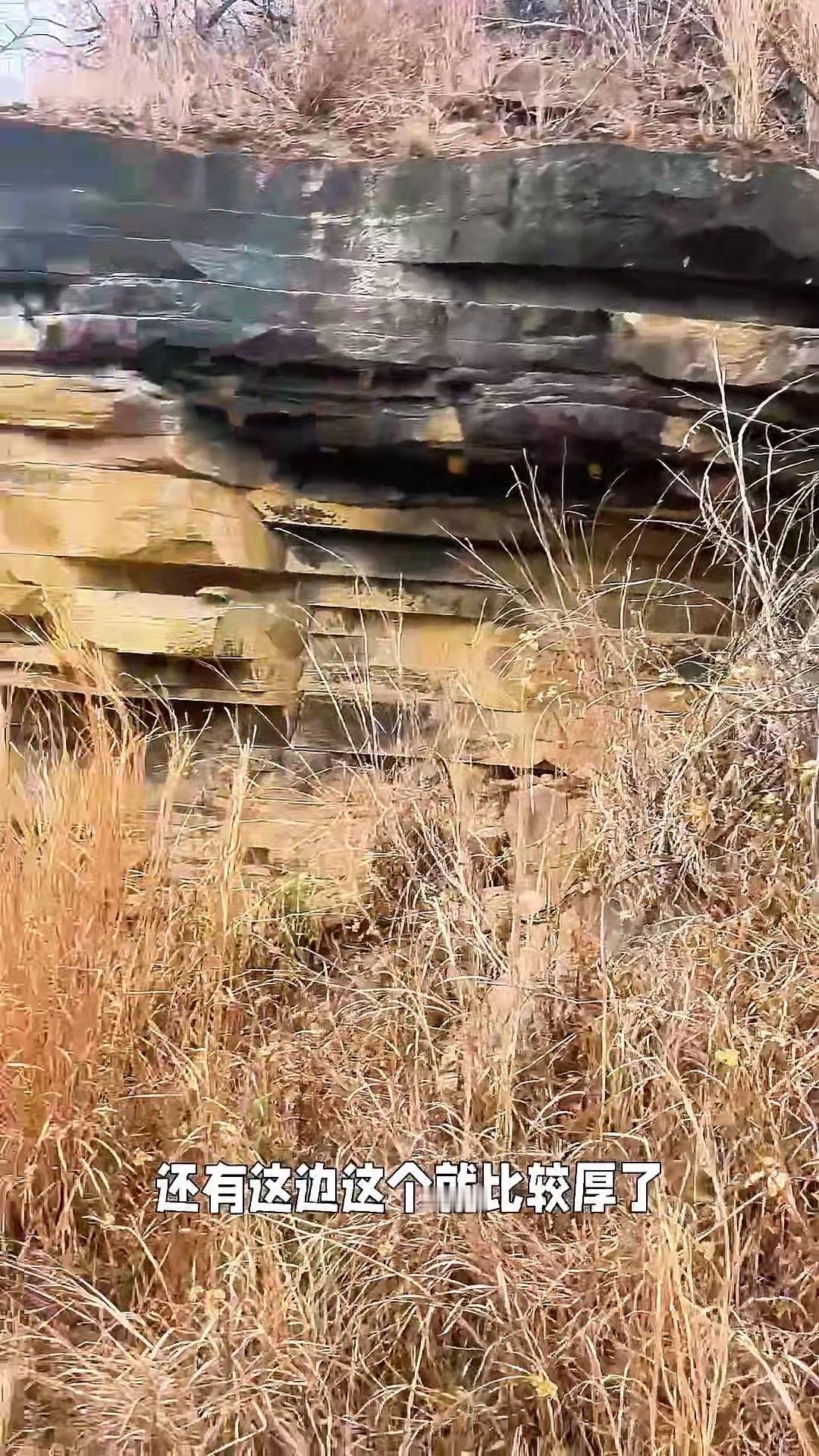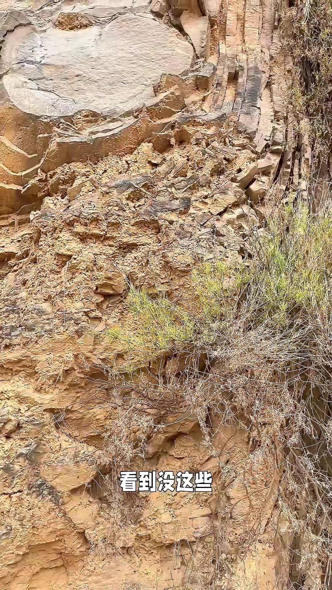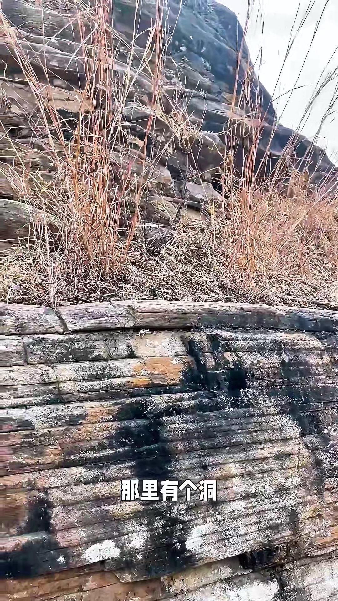 3️⃣悬崖探秘:看到一个悬崖,都是橙色页岩层,虽有洞但中间硬内核,取不出半圆壳。